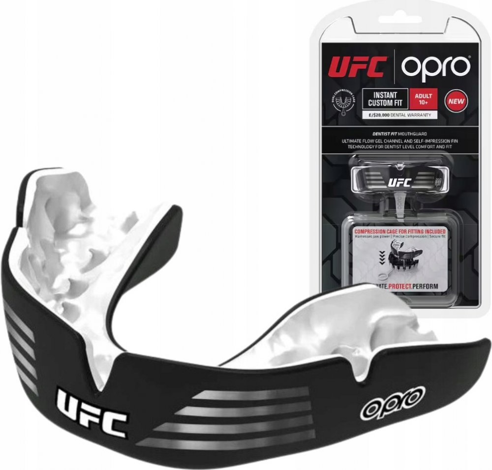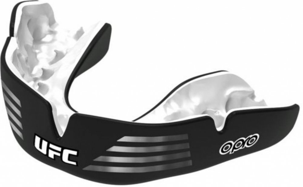 Chránič na zuby Opro oceníte například při hokeji, rugby i bojových sportech. Je navržen pro ochranu horní čelisti a zabrání poškození chrupu při úderech a nárazech. Zabudované dýchací kanálky neomezují dýchání ani při náročnějším a intenzivnějším pohybu. Klíčové vlastnosti chrániče na zuby OPRO INSTANT CUSTOM FIT UFC, černá/stříbrná/bílá Chránič zubů pro dospělé pomáhá zabránit poškození chrupu p...