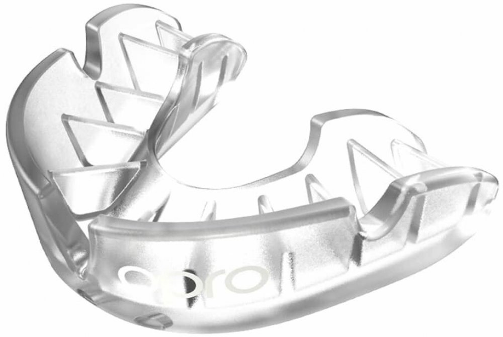 Chránič zubů OPRO Silver představuje vyšší úroveň ochrany v rámci řady OPRO Self-Fit. Je vyroben z dvouvrstvé konstrukce, která spolehlivě rozptyluje sílu nárazů a minimalizuje riziko poranění zubů či dásní. Patentovaná technologie fin žeber umožňuje, aby se chránič přesně přizpůsobil tvaru zubů. Tvarování je snadné a rychlé díky přiloženému kompresnímu nástroji Flex, který využívá sílu skusu k vytvoření dokonalého otisku.