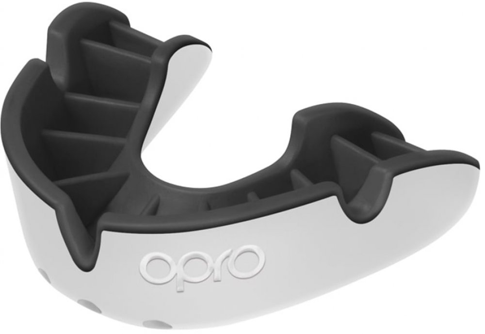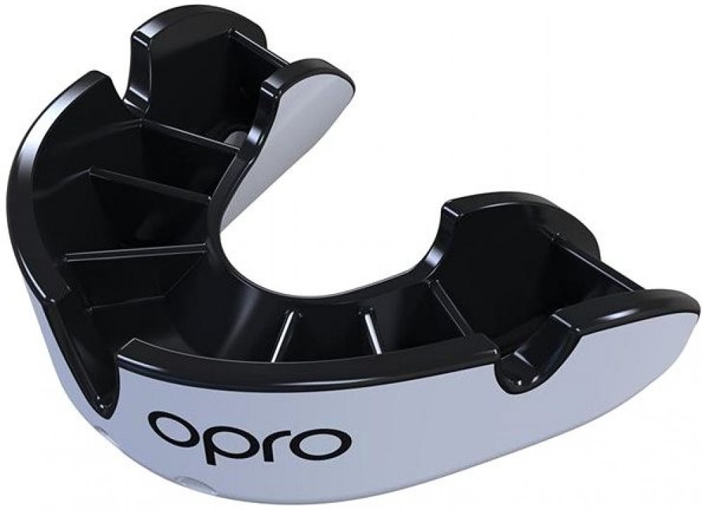 Chráníč zubů Opro SILVER JUNIOR s vysokou úrovní ochrany. Pevná vnější vrstva proti nárazu, pružná vnitřní vrstva pro ideální tvarování a maximální komfort nošení, mluvení a dýchání. Compression cage je unikátní forma, díky které vytvarujete a přizpůsobíte chránič přesně Vašim potřebám. Compression Cage při tvarování rozprostře tlak rovnoměrně na celou čelist a zajistí tak maximálně účinné přilnutí. Vnitřní část chrániče nabízí patentovanou technologii žáber, které po vytvarování přesně vyplní mezery mezi Vašimi zuby a poskytují tak maximální ochranu. Chránič obsahuje také antibakteriální aditiva (bez příchutě), která zahubí 99,99 % bakterií.