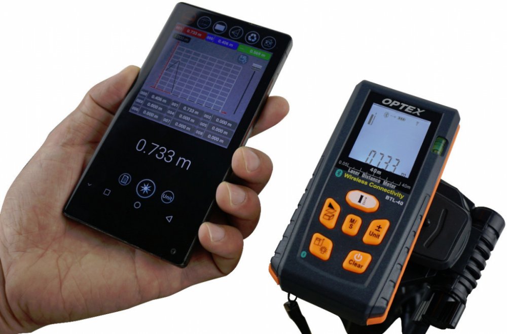 Použijte laserový měřič Optex s Bluetooth rozhraním.