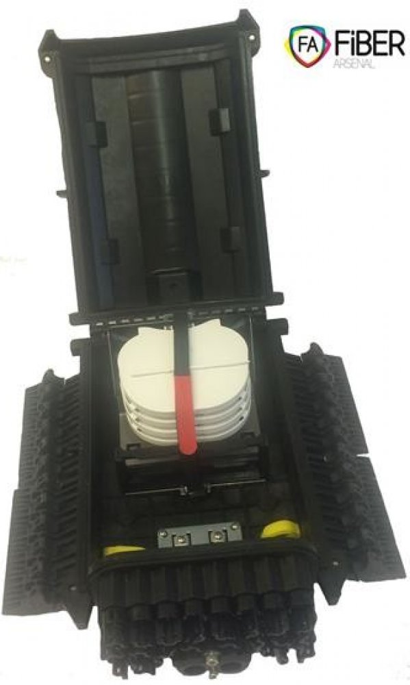 Odklopná kabelová zemní spojka FA-JCD-24-I2 od výrobce Fiber Arsenal, pro 48 (až 96) vláken (možno dát do optické kazety dva sváry na sebe). Jedná se o pasivní prvek, který poskytuje vynikající ochranu vláken