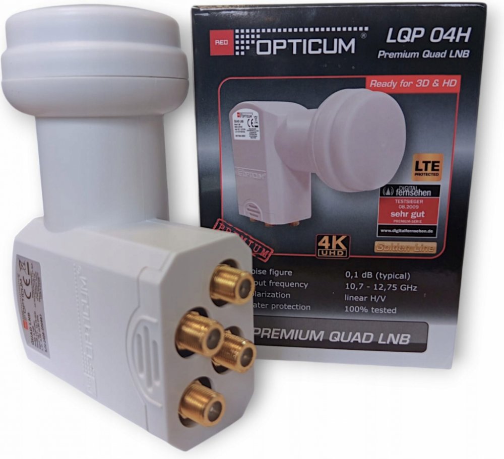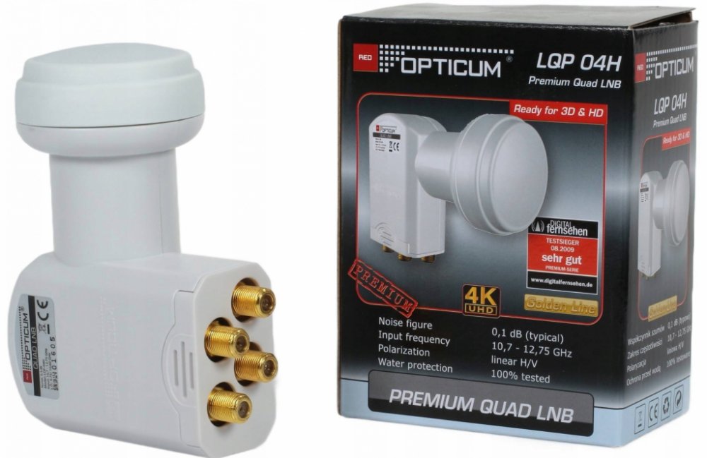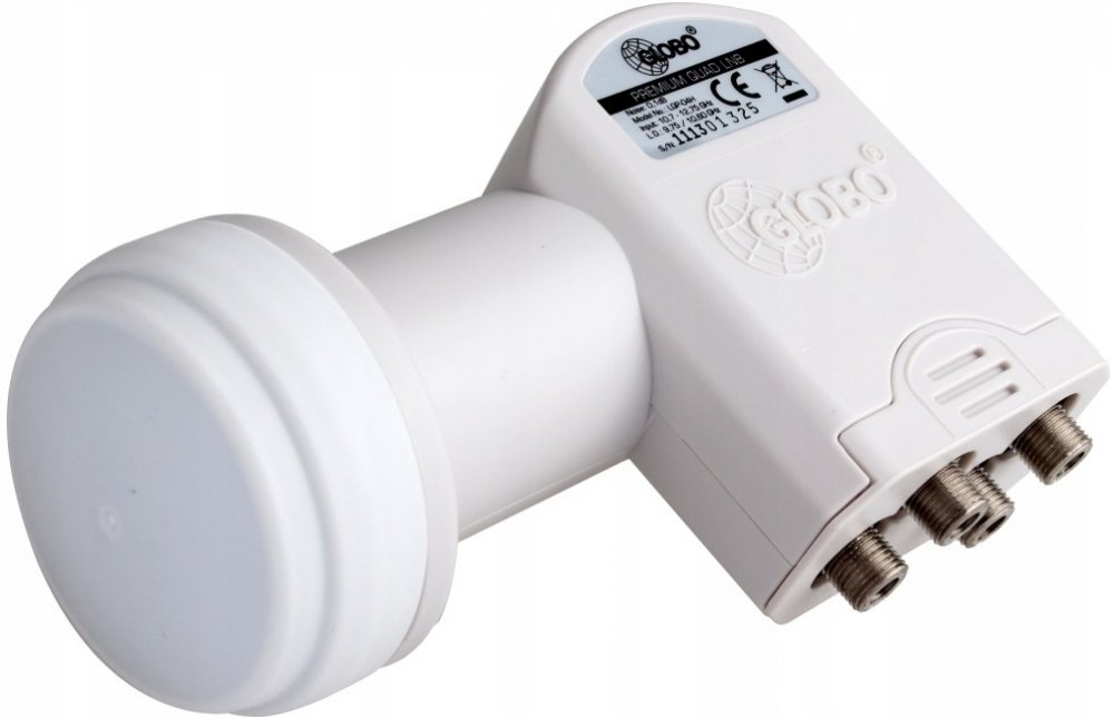 Univerzální Quad konvertor až pro 4 satelitní přijímače pro digitální příjem s nízkým šumový číslem 0,1 dB.