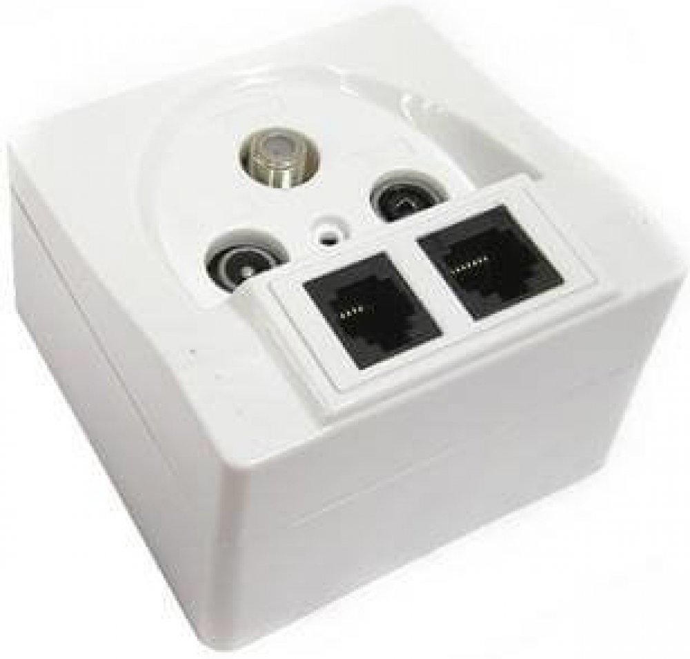 Tato zásuvka umožňuje snadné a přehledné připojení všech běžných domácích médií a komunikačních linek. Vybavena je kvalitními konektory typu F (satelit), IEC (TV, rádio), RJ45 (LAN) a RJ11 (telefon) , což z ní činí ideální řešení pro novostavby, rekonstrukce i technicky náročné instalace.