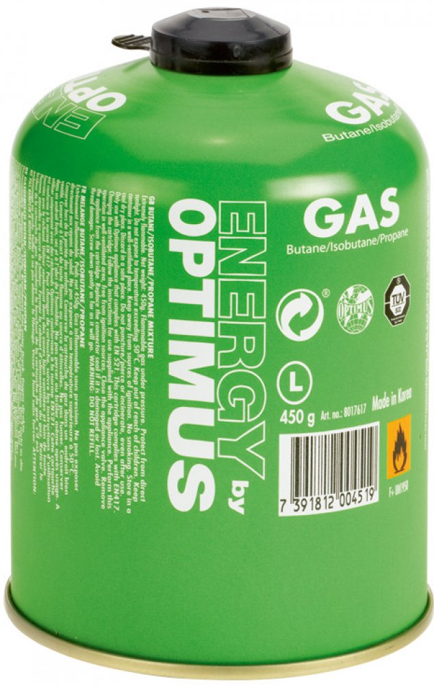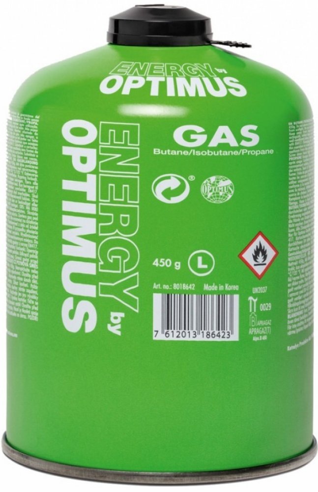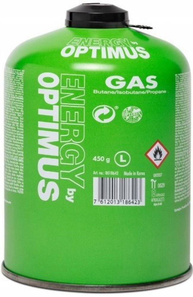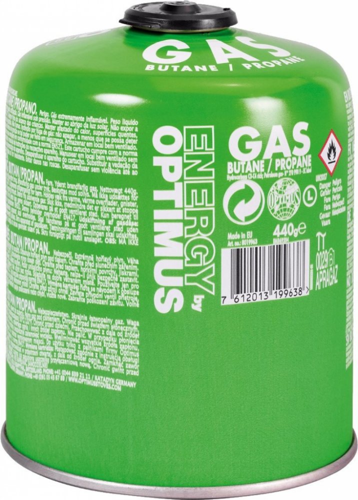 Kartuše závitem 7/16\" dle normy EN 417 obsahující celoročně použitelnou směs butanu (50 %), izobutanu (25 %) a propanu (25 %). Kartuše je opatřena bezpečnostním krytem chránícím závit proti poškození, který zároveň slouží jako indikátor použití. Do vypouklého dna kartuše lze pro bezpečný a pohodlný transport uložit složený vařič Optimus Crux.