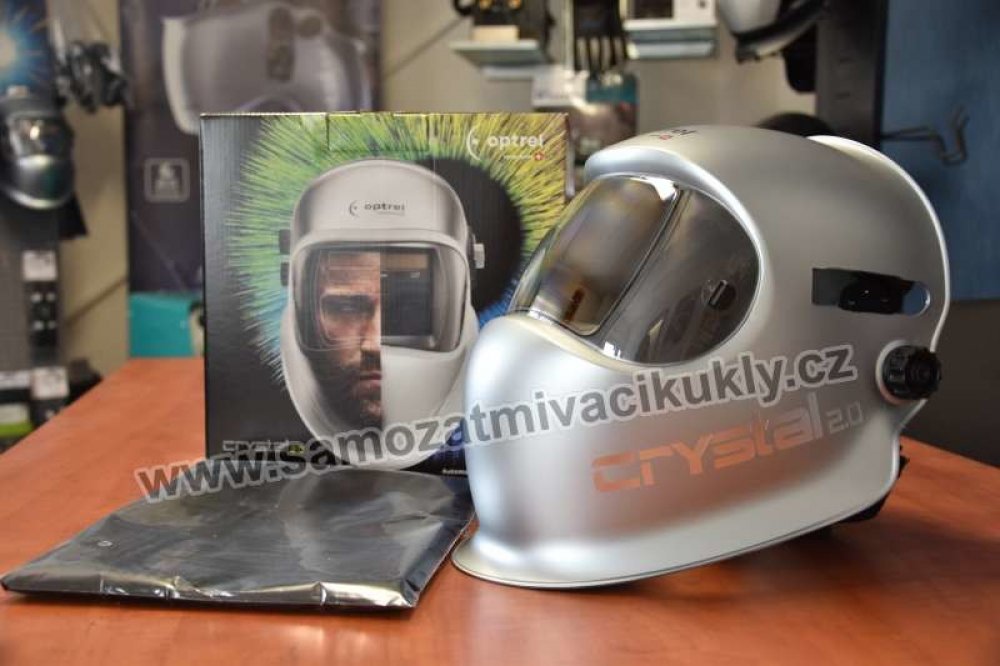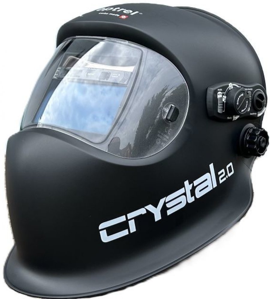 Plně automatická svářecí kukla Crystal 2.0 Optrel (manuální ovládání není potřeba) s reálným zobrazením barev, samostmívací kazeta s rozsahem tmavosti 4 -12 s autopilotem.