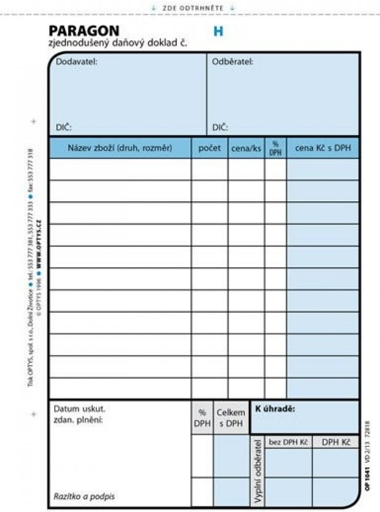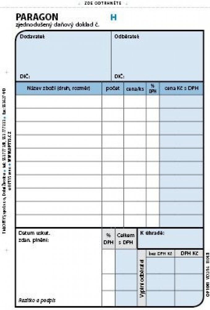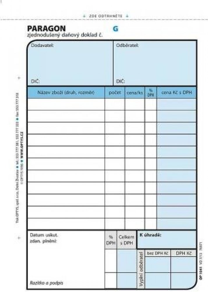 Paragon - zjednodušený daňový doklad