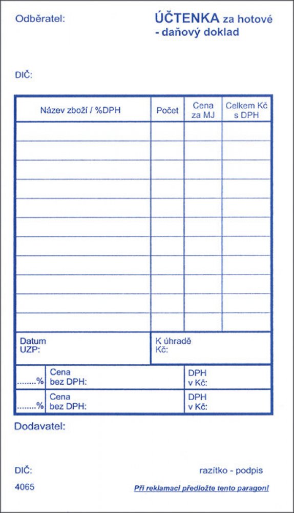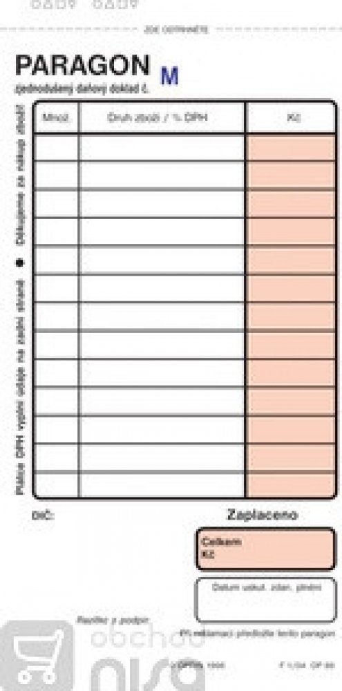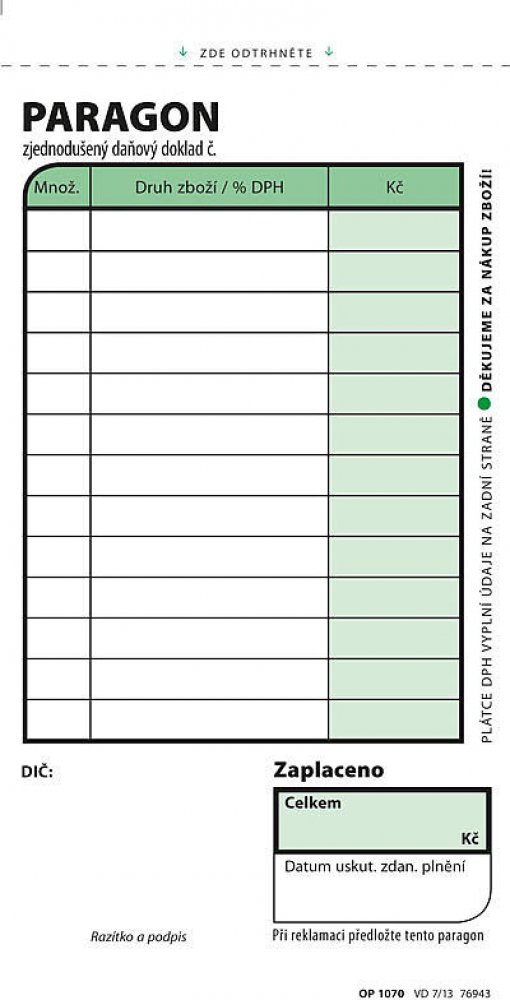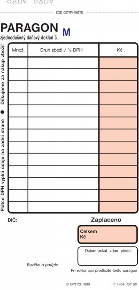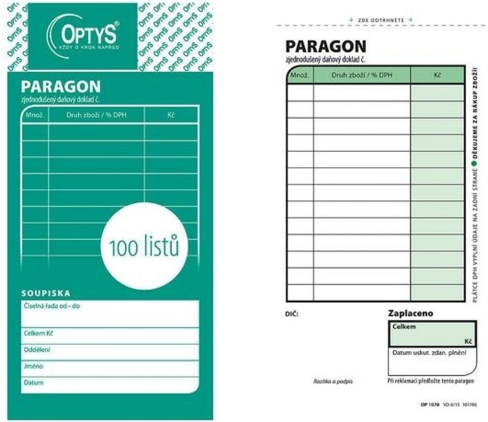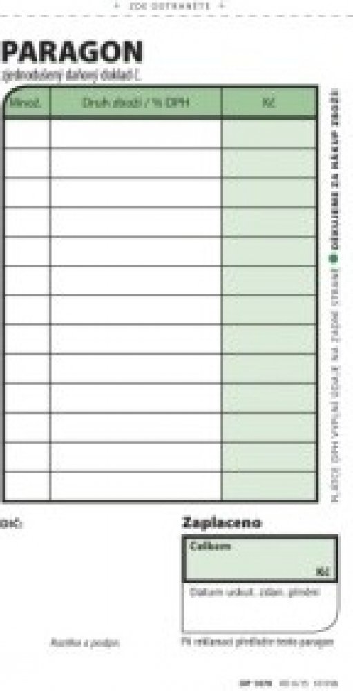 Paragon je určen zejména pro neplátce DPH.