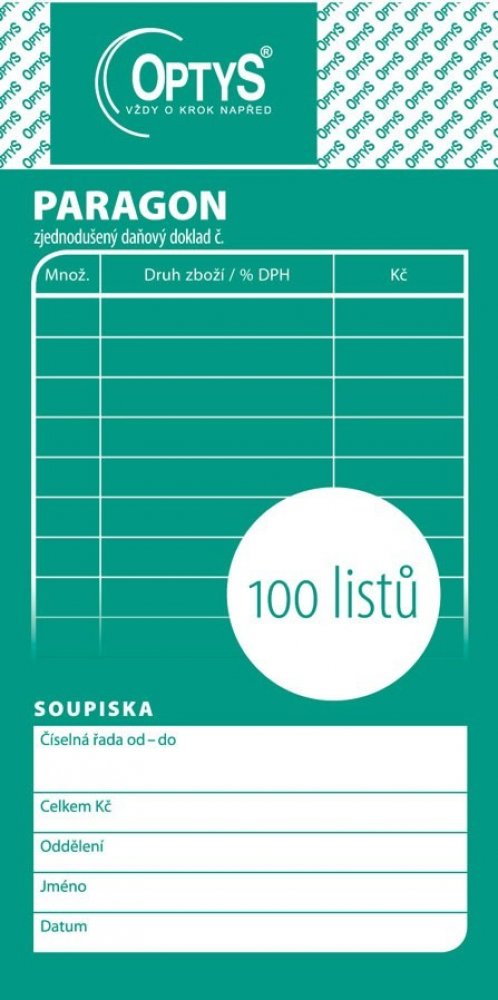 Optys 1070 Obchodní paragon nečíslovaný 100 listů