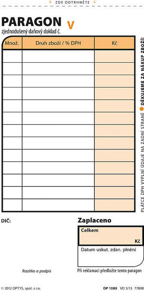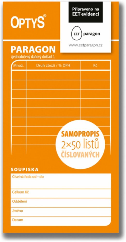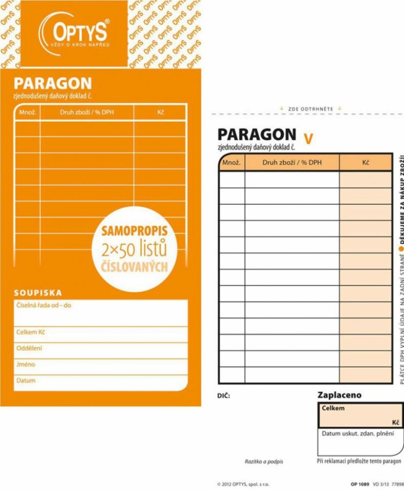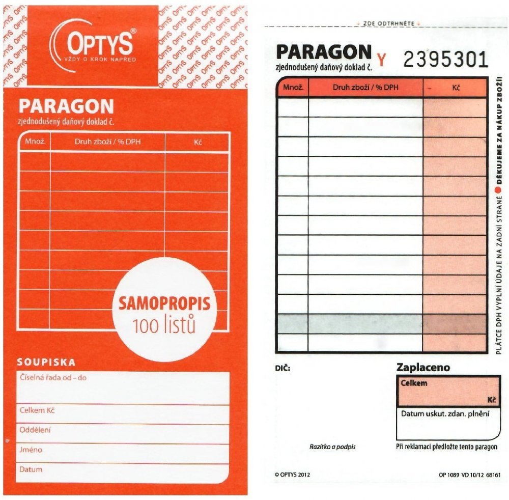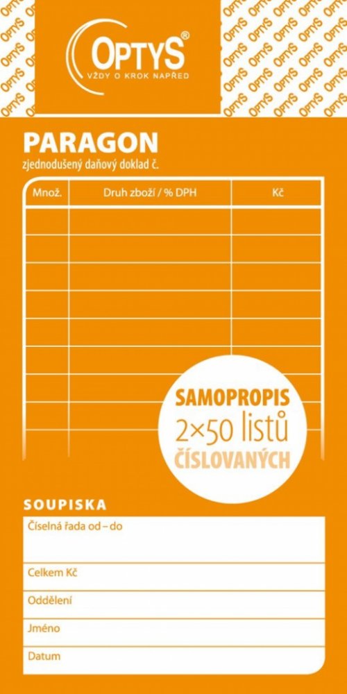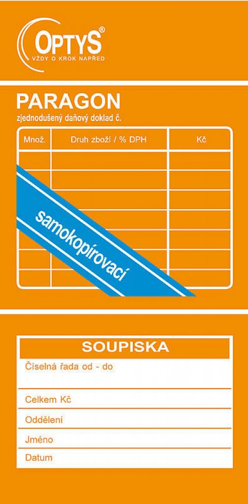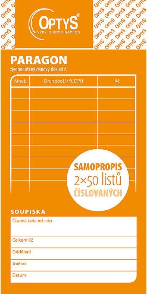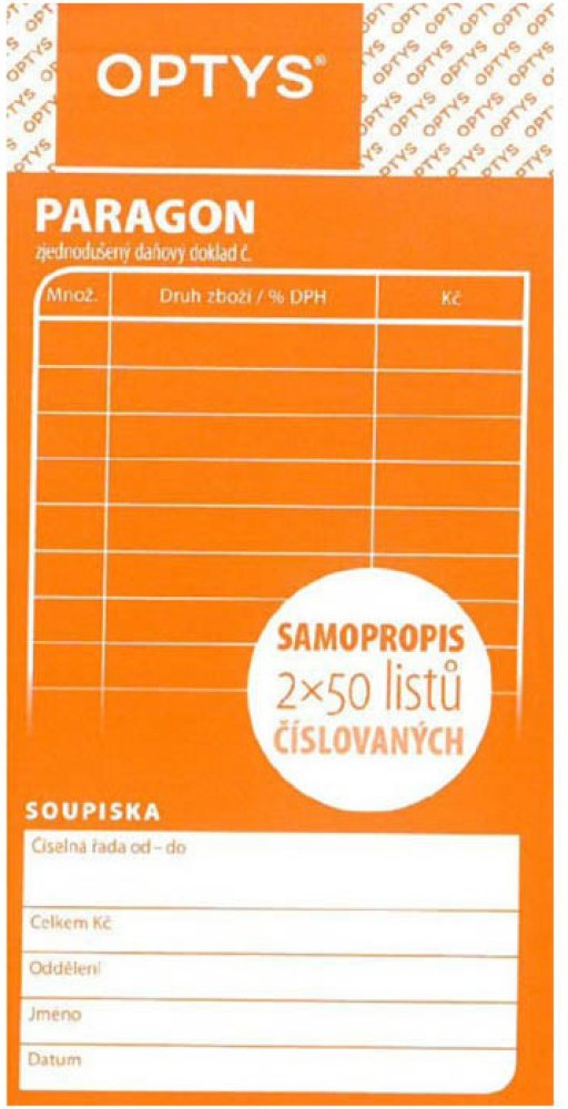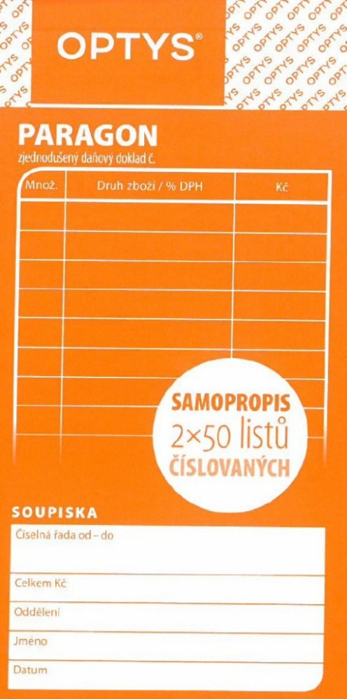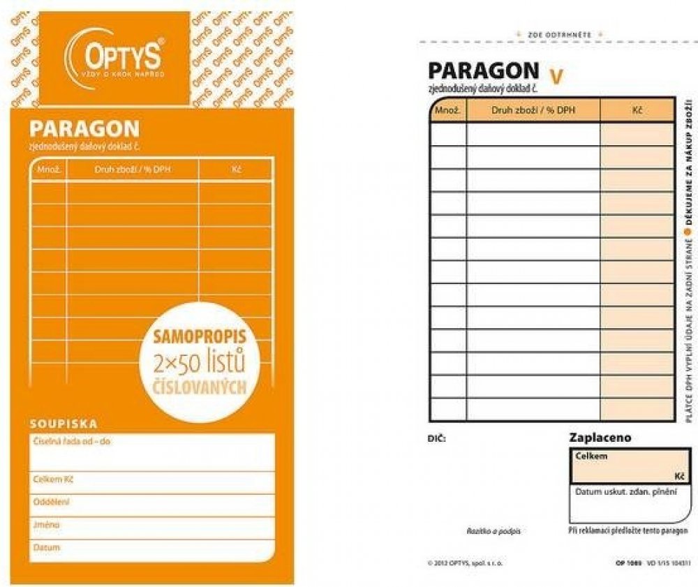 Optys 1089 Obchodní paragon 2x 50listů propisující