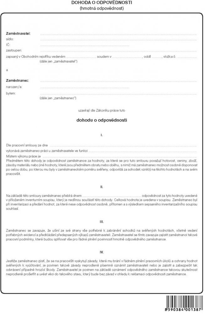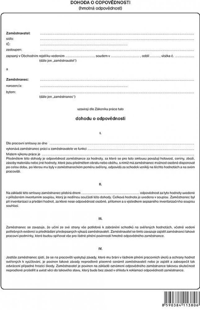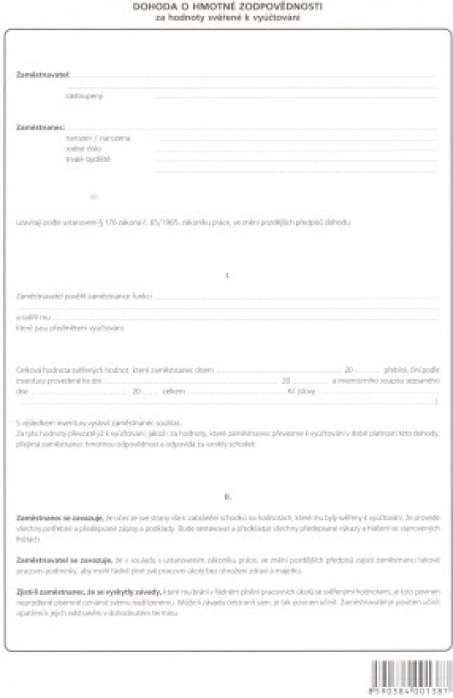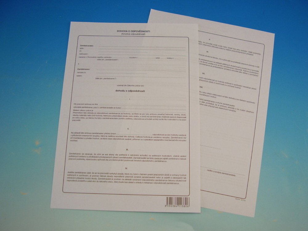 Optys 1138 Dohoda o hmotné odpovědnosti A4 nepropisovací