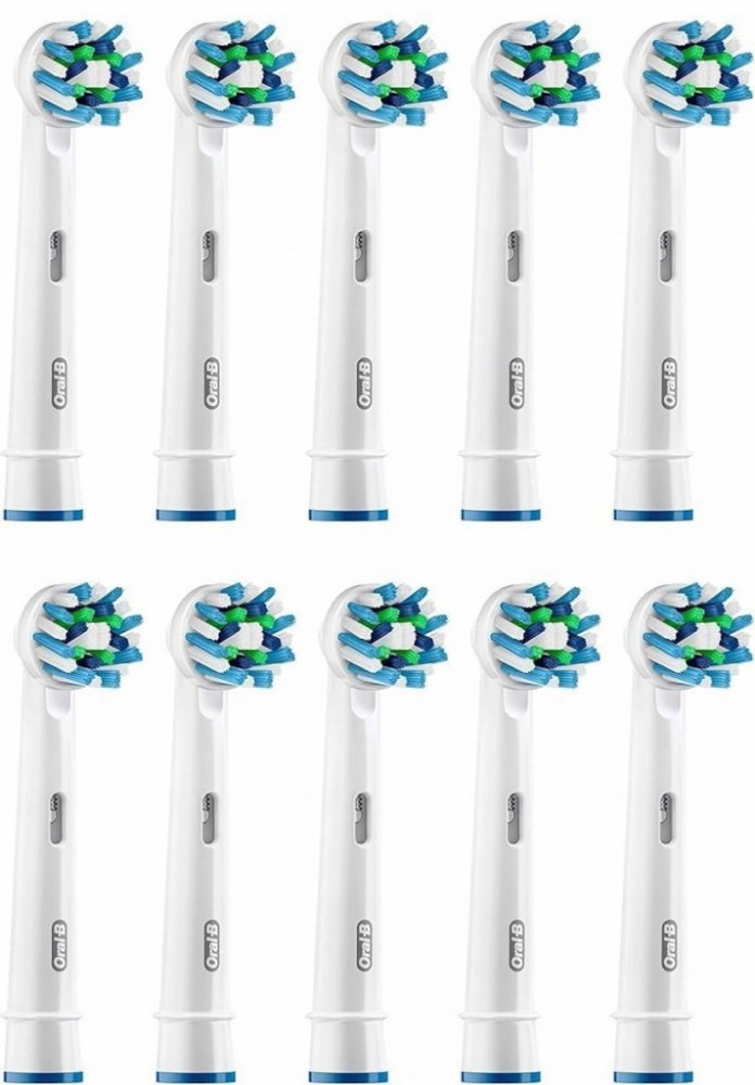 Špičková kvalita přední značky Braun - to jsou náhradní zubní kartáčky Braun Oral-B CrossAction EB 50-10. Hlavice zubního kartáčku má unikátně tvarovaná vlákna, což při čištění zajistí, že odstraníte až 100 % zubního plaku oproti běžným, manuálním kartáčkům, a Vaše zuby budou perfektně vyčištěné! Tvary vláken jsou důmyslně uspořádány tak, že při čištění obklopí každý zub zvlášť, vždy v pravidelném tvaru ze všech stran, a dostanou se spolehlivě i do prostoru mezi zuby. Výsledkem jsou bezvadně čisté zuby s maximálním odstraněním zubního plaku. Braun Oral-B náhradní kartáčky CrossAction EB 50-10 Speciální tvar čistící hlavice zaručí perfektně vyčištěné zuby a odstraní až 100% zubního plaku. Tvary vláken jsou umístěny pod pravidelnými úhly, což výrazně zvyšuje efektivitu čištění zubů. Spolehlivě vyčistí i hůře přístupná místa, např. prostor mezi zuby. Kompatibilní se všemi kartáčky Oral-B. Balení obsahuje 10 ks náhradních hlavic Oral-B CrossAction Čistící vlákna Oral-B CrossAction Speciálně nakloněná vlákna kartáčkové hlavice osazená pod úhlem 16° střídavé délky obklopují každý zub zvlášť a zajišťují tak jeho důkladné vyčištění. Střídavé různé délky vláken na čistící hlavici - účinnější čištění všech zubních ploch, včetně mezizubních prostor. Zvýšená hustota O 29% více štětin pro lepší a přesto jemné čištění (oproti klasickému manuálnímu zubnímu kartáčku). Technologie (Criss cross) štětiny osázené různým směrem pomáhá lépe čistit mezizubní prostory. Indikátor opotřebení čistící hlavice - pokud vlákna čistící hlavice do poloviny vyblednou, je třeba je vyměnit. Výměna čistící hlavice - cca 1 x za tři měsíce. Mohlo by Vás také zajímat: Elektrické zubní kartáčky Náhradní hlavice na kartáčky Ústní sprchy - irigátory