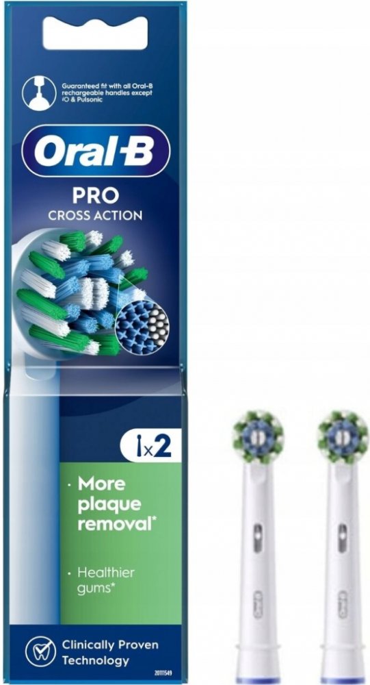 Originální hlavice Oral-B PRO Cross Action s více než 2200 vlákny pod úhlem 16° uspořádanými do ve tvaru písmene X. Odstraňují až o 100 % více bakteriálního plaku než kartáček. Kompatibilní s kartáčky Oral-B s kulatou hlavou. Sada 2 kusů.