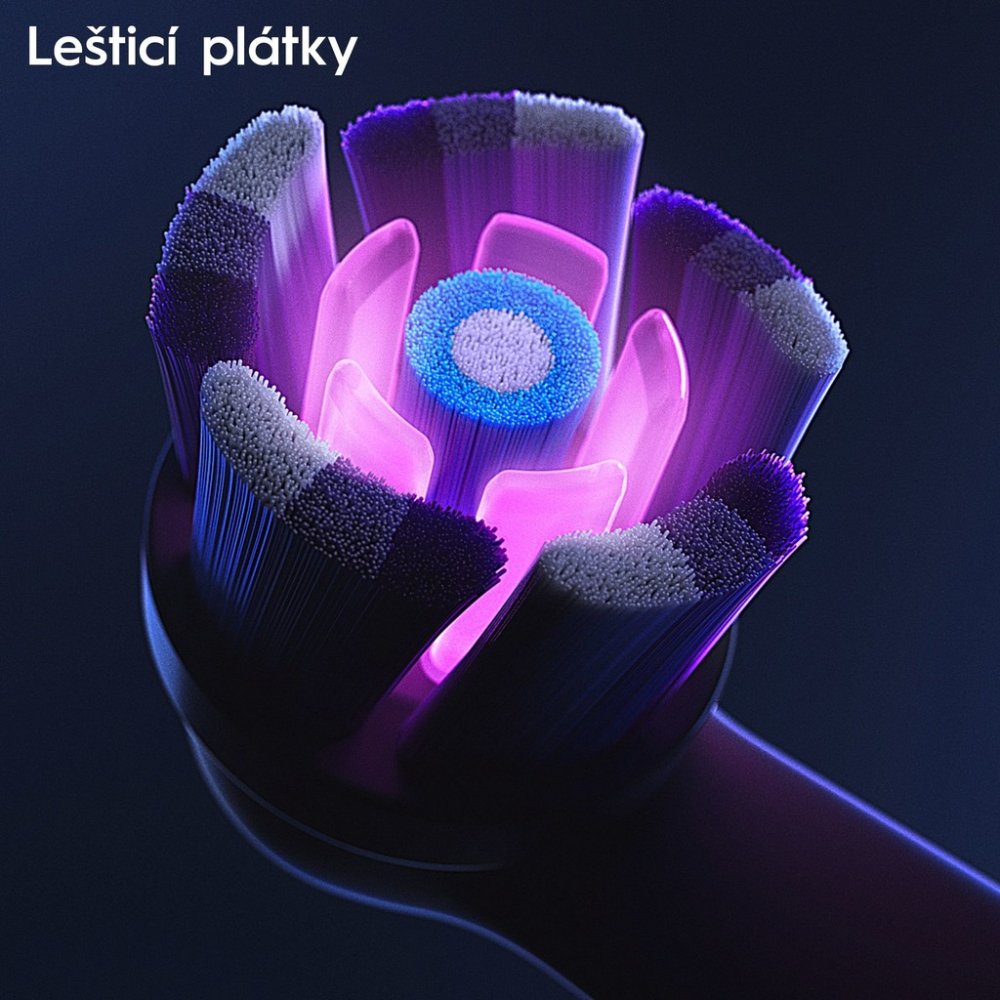 Modrá vlákna během používání postupně zesvětlají, čímž signalizují nutnost výměny za nový kartáček. Tato technologie pomáhá zaručit optimální výkon kartáčkové hlavy a nejúčinnější čištění vašich zubů. Dentisté doporučují výměnu hlavic elektrických zubných kartáčků každé 3 měsíce, není tedy na co čekat. Náhradní hlavice jsou kompatibilní s elektrickými kartáčky Oral-B iO.