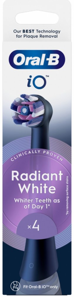 Náhradní hlavice Oral-B iO Radiant White Black se hodí pro dospělé uživatele. Umožňují maximálně zprofesionalizovat péči o citlivé dásně a zpříjemnit si každodenní zubní hygienu. Hlavice přináší kombinaci efektivně zkosených vláken, které jsou vylepšené o leštící plátky. Díky tomu je čištění maximálně pokrokové a zuby viditelně bělejší už od prvního čištění. Kulatá kartáčková hlava působí skrze jemné mikrovibrace a dosahuje tak těch nejlepších bělících výsledků, protože dochází k odstranění velkého množství zubního plaku. Náhradní hlavice Oral-B iO Radiant White Black se pro udržení optimálních výsledků mění každé 3 měsíce. Samotná vlákna mají modrou barvu a každodenním používáním postupně blednou, až kompletně zesvětlají, což je ideální doba pro výměnu, která odpovídá 3 měsícům. Náhradní hlavice Oral-B iO Radiant White Black jsou kompatibilní s elektrickými kartáčky Oral-B iO. Klíčové vlastnosti náhradních hlavic Oral-B iO Radiant White...