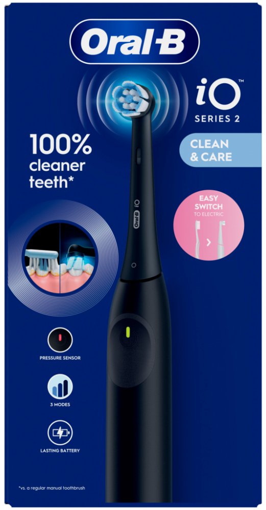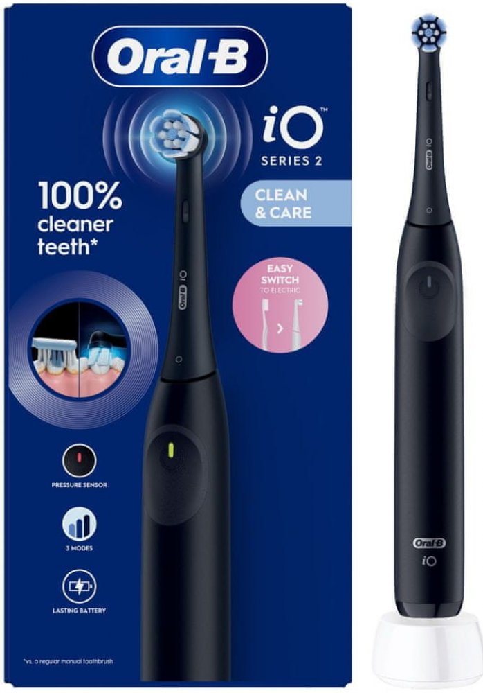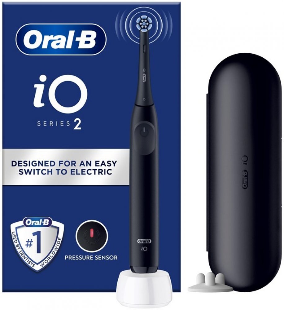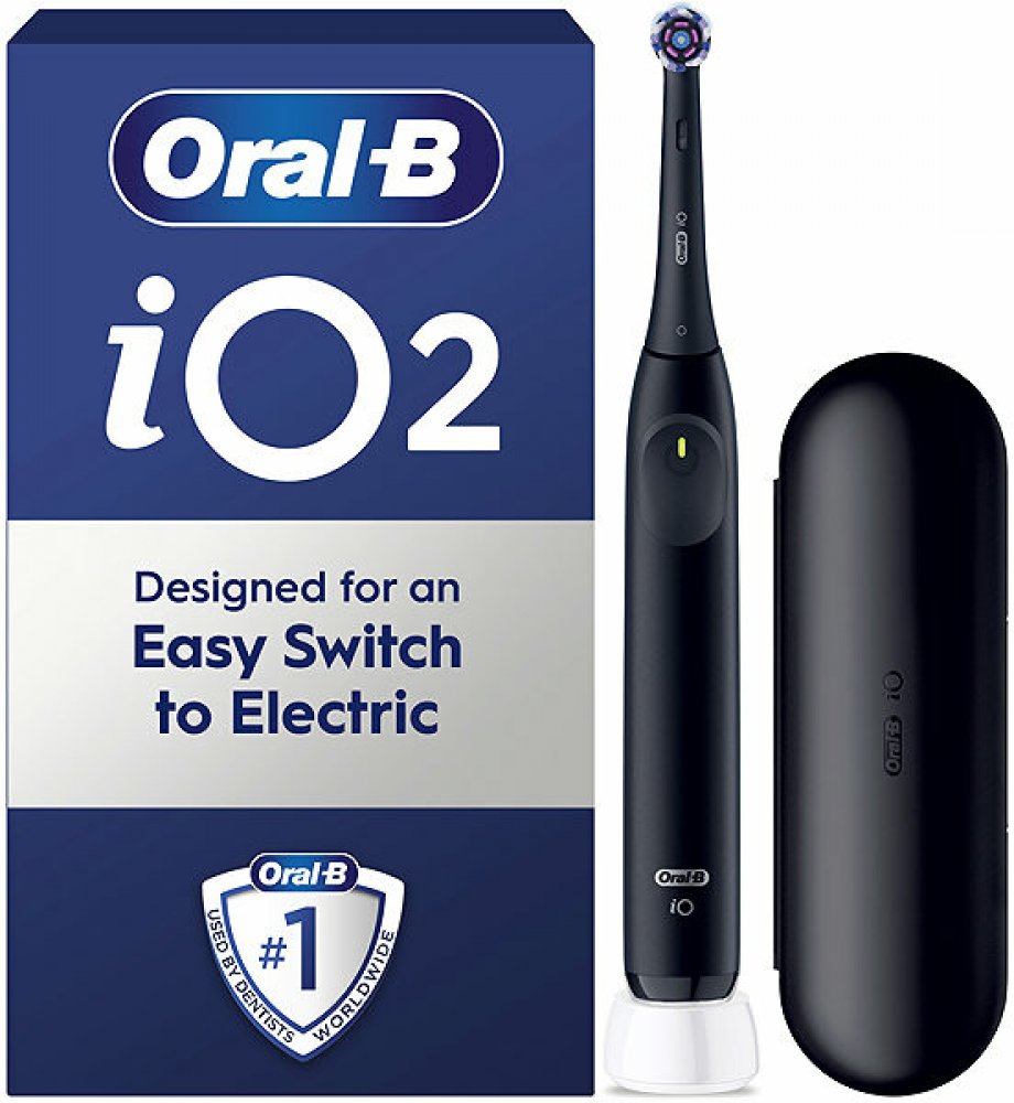 Elektrický zubní kartáček Oral‑B iO2 Night Black kombinuje klinicky prokázanou účinnost při odstraňování plaku podél dásňového okraje s automatickým senzorem tlaku a intuitivním ovládáním. Má 3 režimy, 2minutový timer s 30s segmenty, v balení jsou 2 nástavce (Gentle Care, Ultimate Clean), cestovní pouzdro a magnetická nabíječka, což z něj dělá praktickou volbu pro citlivé i běžné čištění.