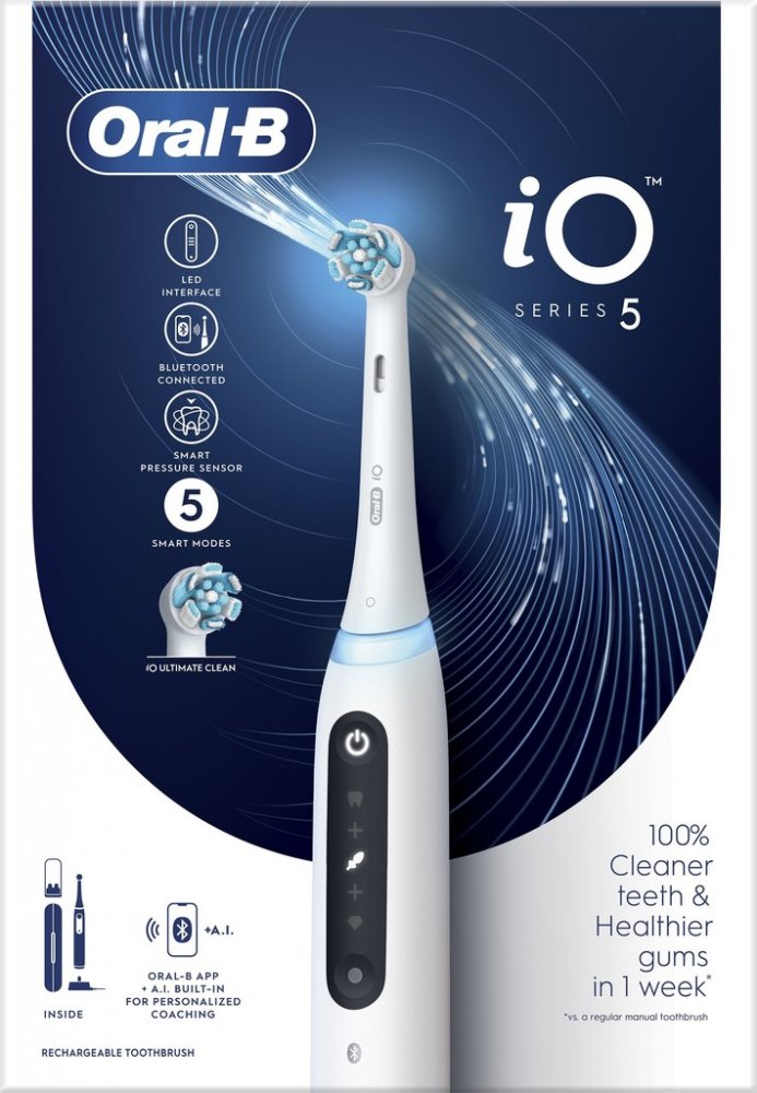Dopřejte si profesionální čistotu v pohodlí domova s Oral-B iO Series 5 Quite White. Tento elegantní elektrický kartáček využívá revoluční iO™ technologii, která spojuje jemné mikrovibrace s kulatou kartáčkovou hlavou inspirovanou zubními lékaři. Díky propojení s aplikací Oral-B a chytrým funkcím budete mít čištění plně pod kontrolou – pro zdravější dásně, bělejší úsměv a pocit svěžesti každý den....