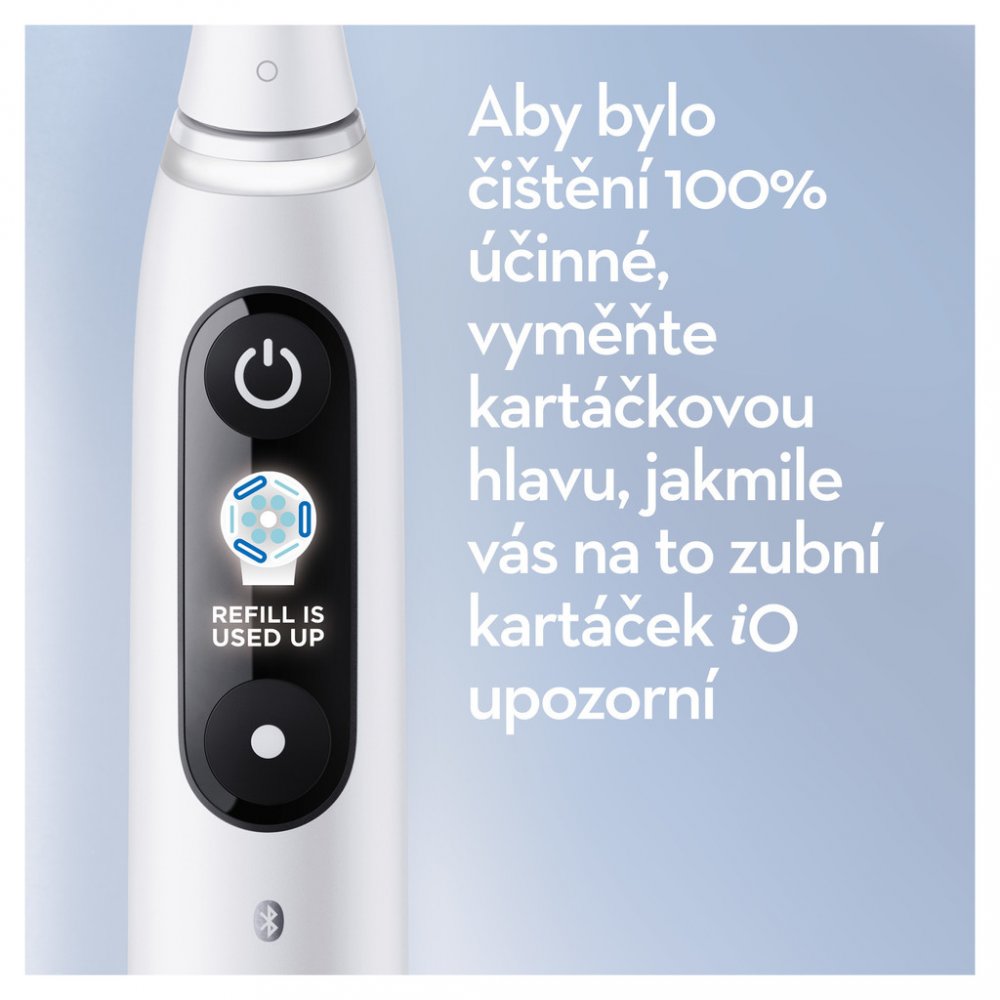 Obsah balení: 1 rukojeť iO8 barva bílá, 1 kartáčková hlavice Ultimate Clean, 1 prémiové cestovní pouzdro, 1 magnetická nabíječka, 1 praktický úložný prostor na kartáčkové hlavy