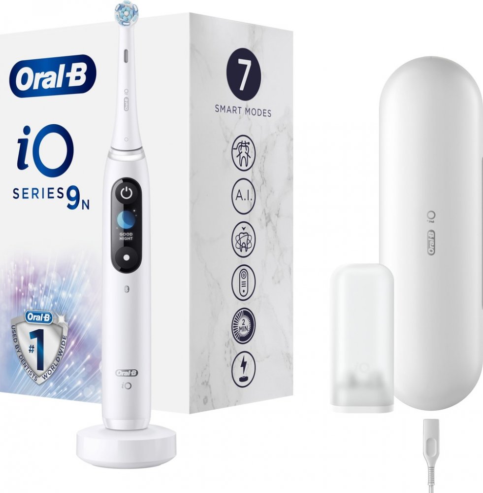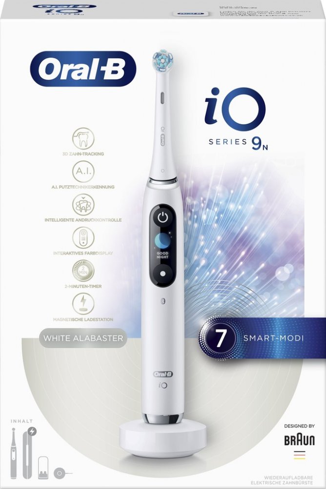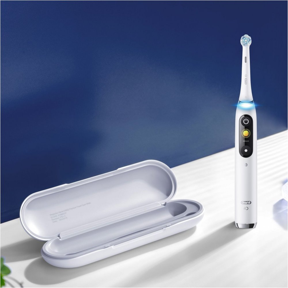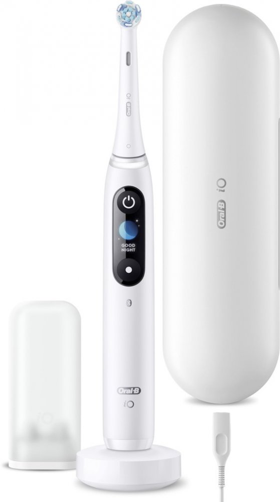 Zcela nová technologie iO se nachází na pomezí sonické a oscilačně-rotační technologie. Magnet v těle kartáčku vytváří oscilačně-rotační pohyb s mikrovibracemi. Mikrovibrace rozpohybují hlavici kartáčku, která velmi jemně, ale důkladně odstraní plak a jiné nečistoty ze zubů i z prostor mezi nimi. Chod kartáčku je velmi tichý a odezva vibrací daleko menší než u předchozích modelů. Na interaktivním barevném displeji si můžete vybrat jeden ze sedmi režimů čištění a zkontrolujete si doporučenou dobu čištění díky dvouminutovému časovači. V neposlední řadě zjistíte stav nabití baterie.