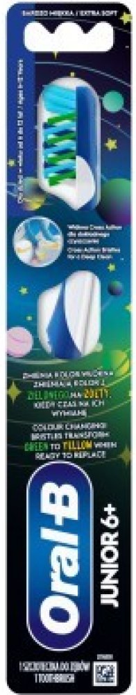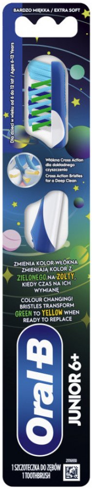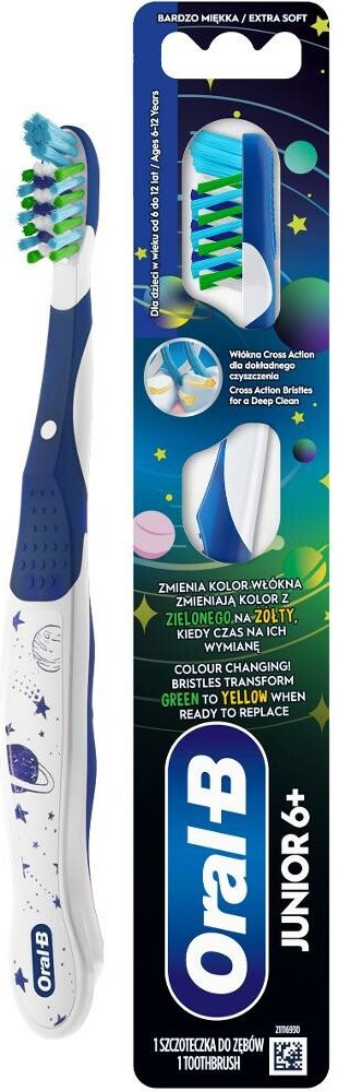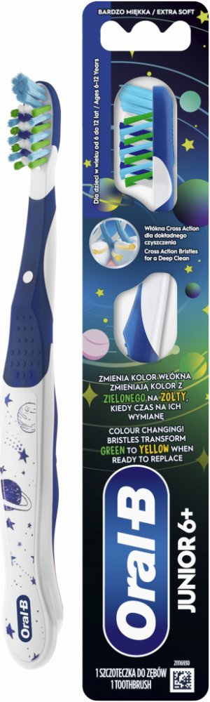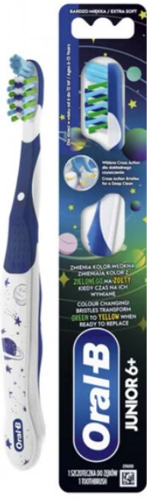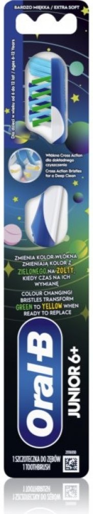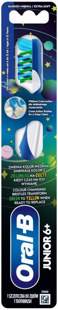 S kartáčkem ORAL-B JUNIOR 6+ si uděláte z čištění zubů neobvyklé dobrodružství. Tento manuální kartáček je určen pro děti ve věku 6-12 let a čistí mléčné i trvalé zuby. Má vlákna CrissCross, která odstraňují zubní plak i z těžko přístupných míst. Vestavěná část na čištění jazyka odstraňuje bakterie z jazyka a sliznice tváří a inovativní technologie změny barvy vás upozorní, kdy je třeba kartáček v...