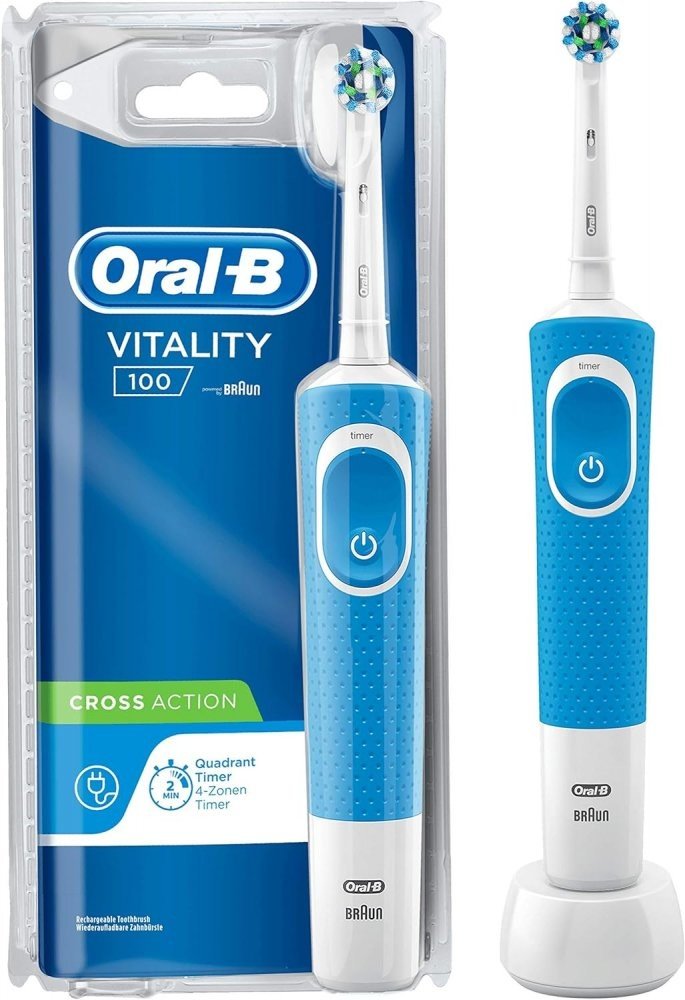 S elektrickým zubním kartáčkem Oral-B Vitality 100 Blue Sensitive se můžete spolehnout na klinicky ověřenou čistotu ústní dutiny. Jeho kartáčková hlava je přitom navržena tak, aby vlákny přesně obklopila každý zub a poskytla mu péči, kterou potřebuje. Navíc je zde nasazena 2D technologie čištění, která oscilacemi a rotacemi mimořádně účinně odstraňuje zubní plak – mnohem lépe než manuální zubní kartáčky. Za minutu totiž dokáže vyvinout až 7 600 oscilačních pohybů, i proto kartáček doporučují zubní lékaři po celém světě! Kromě toho má v repertoáru ale také profesionální časovač, který vám pomůže čistit si zuby precizněji po dobu dvou minut, jak radí zubaři. Ergonomický tvar pak zajistí, že skvěle padne do ruky a dodávaný je samozřejmě i s dobíjecí stanicí. Klíčové vlastnosti: unikátní kulatá kartáčková hlava, která obklopuje každý zub prokázaně odstraňuje více zubního plaku než běžný manuální zubní kartáček účinná oscilačně-rotační (2D) technologie profesionální časovač pro preciznější čištění doporučený zubními lékaři