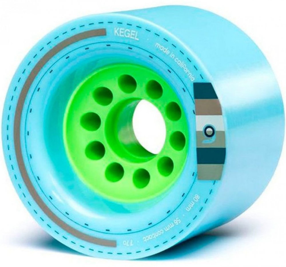 Orangatang je zavedená značka a to samé platí i pro jejich modelovou řadu Kegel. Kegel o durometru 77a jsou nejměkčí variantou, která dlouhodobě chyběla v line-upu značky, ideální na grip nebo pro těžší jezdce. Díky měkčímu urethanu podrží víc než oranžová (80a) a fialová (83a) varianta.