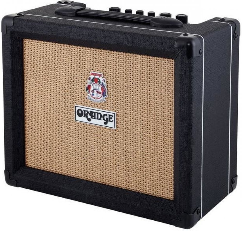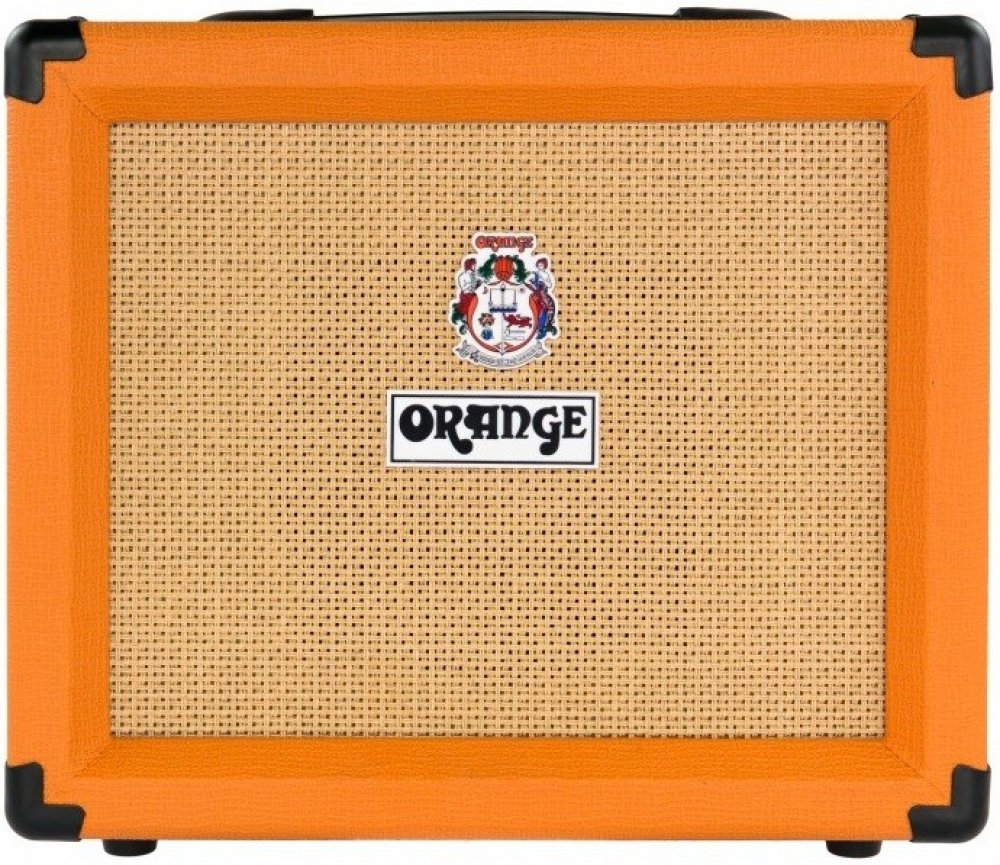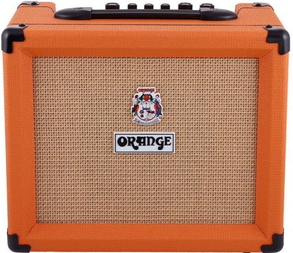 Kytarové tranzistorové kombo ORANGE CRUSH 20RT Aparáty ze série Crush mají za účel nabídnout zvuk co nejpodobnější tomu legendárních celolampových zesilovačů a komb Orange v malém a cenově dostupném balení, které ocení jak náročnější začátečníci, tak pokročilí kytaristé. Že patří do rodiny Orange poznáte nejen podle zvuku, ale i podle legendárního oranžového vintage designu. Crush 20RT Crush je plně analogové tranzistorové kytarové kombo, které nabízí výkon 20 Wattů a osazené je reproduktorem o průměru 8 palců. Tato výbava ho dělá ideální na domácí cvičení, ale bohatě poslouží i do zkušebny. Ovládací prvky naleznete na jeho horním panelu. Krom hlavního spínače a vstupu pro kytaru jsou zde potenciometry Volume, Gain a Dirty pro nastavení hlasitosti čistého nebo zkreslení tónu. Pro úpravu jeho ekvalizace je zabudován 3 pásmový ekvalizér sestávající z ovladačů Treble, Middle a Bass. Kombo je také vybaveno i sluchátkovým výstupem pro tiché cvičení a vstup Aux-In slouží pro připojení externích zařízení typu CD nebo mp3 přehrávačů. Nakonec na horním panelu najdete ještě ovladač efektu Reverb a praktickou zabudovanou ladičku. Orange CR20RT je kvalitní malé kombo, které Vás příjemně překvapí tím, jak velký zvuk z něj lze získat. Vyzkoušejte a uslyšíte. Technické údaje • Zabudovaná ladička