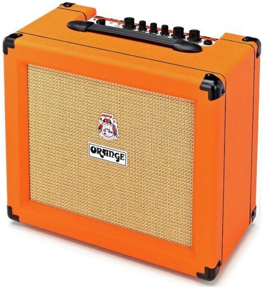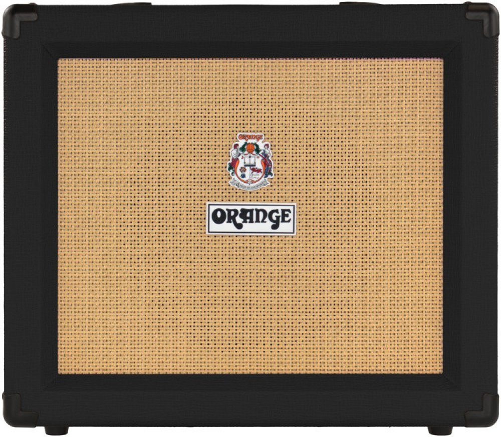 Kytarové tranzistorové kombo ORANGE CRUSH 35RT-BLK Aparáty ze série Crush mají za účel nabídnout zvuk co nejpodobnější tomu legendárních celolampových zesilovačů a komb Orange v malém a cenově dostupném balení, které ocení jak náročnější začátečníci, tak pokročilí kytaristé. Že patří do rodiny Orange poznáte nejen podle zvuku, ale i podle legendárního oranžového vintage designu. Crush 35RT Crush je plně analogové tranzistorové kytarové kombo, které nabízí výkon 35 Wattů a osazené je reproduktorem o průměru 10 palců. Tato výbava ho dělá ideální na domácí cvičení, ale bohatě poslouží i do zkušebny. Ovládací prvky naleznete na jeho horním panelu. Krom hlavního spínače a vstupu pro kytaru jsou zde potenciometry Volume, Gain a Dirty pro nastavení hlasitosti čistého nebo zkreslení tónu. Pro úpravu jeho ekvalizace je zabudován 3 pásmový ekvalizér sestávající z ovladačů Treble, Middle a Bass. Kombo je také vybaveno i sluchátkovým výstupem pro tiché cvičení a vstup Aux-In slouží pro připojení externích zařízení typu CD nebo mp3 přehrávačů. Nakonec na horním panelu najdete ještě ovladač efektu Reverb a praktickou zabudovanou ladičku. Orange CR35RT je kvalitní malé kombo, které Vás příjemně překvapí tím, jak velký zvuk z něj lze získat. Vyzkoušejte a uslyšíte.