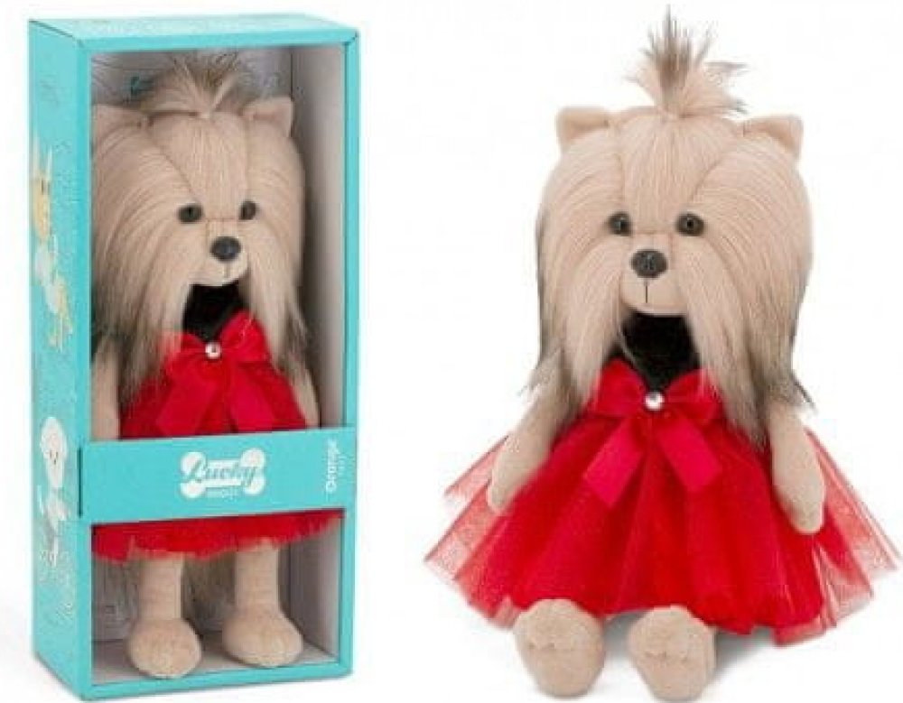 Oblečena je ve zdobných šatech s tylovou červenou sukní a mašličkou na přední straně. Outfit mohou děti převlékat za jiné oblečky pro pejsky Lucky Doggy.