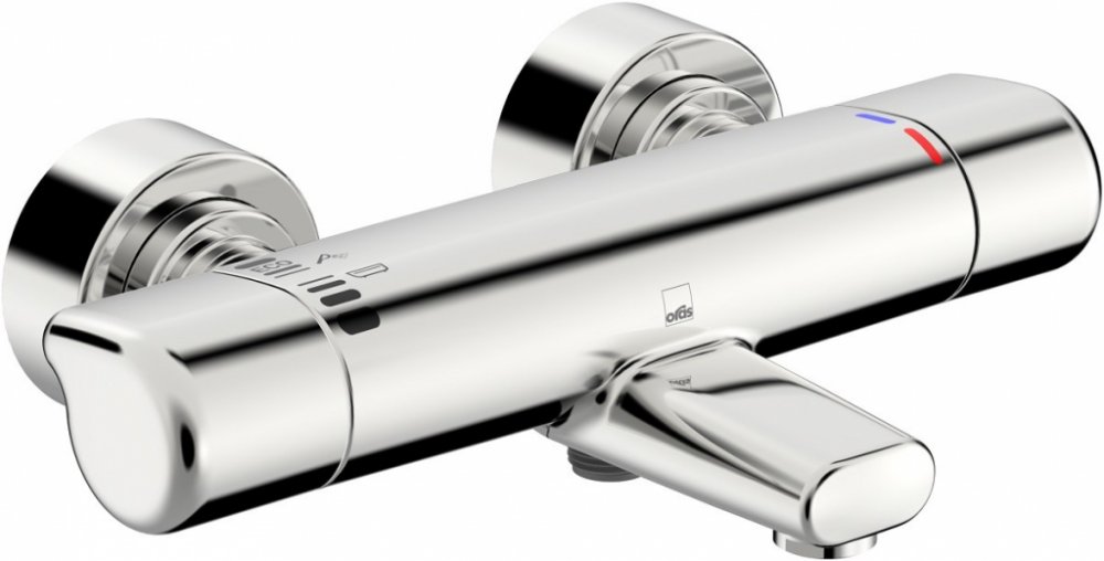 Termostatická sprchová baterie s výtokem a ergonomickými rukojeťmi. Teplotní knoflík s omezovačem teploty nastaveným na 38 °C. Ekologická regulace průtoku vody. - termostatická baterie - pevná výtoková trubice - HONEYCOMB® - ochrana proti usazování vodního kamene - rozety - rukojeť pro regulaci teploty - rukojeť pro ovládání proudu vody - ekologická funkce pro průtok vody - otočný spínač - integrovaný přepínač/regulátor průtoku vody - keramická patrona pro nastavení průtoku - termostatická hlavice pro nastavení teploty - zpětné ventily, síťový filtr (filtry) - mosaz s nízkou korozivností - třikrát utěsněné rozety - barva: chrom