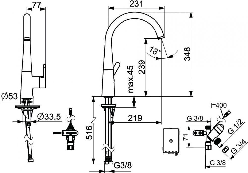 - kuchyňská baterie s inteligentním ventilem pro myčky nádobí a vysokou otočnou výpustí- úhel otočení výpusti je z výroby nastaven na 120° (lze omezit na 0° nebo 60°)- ventil myčky nádobí se automaticky uzavře po 4 nebo 12 hodinách (jedno stisknutí tlačítka otevře ventil na 4 hodiny, podržení tlačítka po dobu 5 sekund otevře ventil na 12 hodin)- napájení 6V baterií- má také vestavěnou funkci omezení průtoku vody a teploty- flexibilní připojovací hadice - průtok vody pro 300 kPa: 0.2 l/s- barva chrom