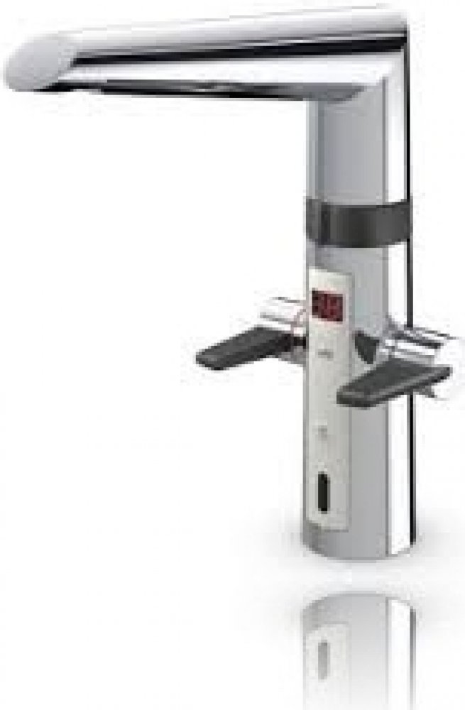 Oras Optima – 2722F se senzorem a ukazatelem teploty Kuchyňská baterie Oras Optima – 2722F s páčkami „easy-grip“ pro teplou a studenou vodu, bezdotykovou funkcí, ukazatel nastavené teploty vody s varováním při nastavení horké vody, vysokým otočným ramenem a provzdušňovašem (perlátorem). Průtok teplé a studené vody se ovládá nezávisle, samostatnými páčkami. Úhel pohybu výtokového ramene je z výroby nastaven na 120° (tento rozsah je možné změnit na 0° nebo 60°). Bezdotyková funkce se spouští přiložením rukou do snímacího prostoru před senzor. Teplot vody pro bezdotykovou funkci je možno nastavit otáčením kroužku mezi výtokovým ramenem a baterií. Bezdotykovou funkci je možné jednoduše vypínat a zapínat. Systém je napájen přímo ze sítě přes zásuvkový transformátor, 230/5 V. Baterie je dodávána s filtry nečistot. Všechny části baterie, které přicázejí do styku s vodou neobsahují olovo. F = s flexi hadičkami Technické informace: Čas dodatečného průtoku 3 s ± 2 s EMC Directive 2004/108/EY Max. doba průtoku 40 s Napájecí napětí 230/ 5 V Pracovní tlak 100 – 1000 kPa Průtok při 300 kPa 0.2 l/s Rozlišovací rozsah Optimally preset Teplota vody max. +70°C Tlaková ztráta při průtoku (0.2 l/s) 290 kPa Třída bezpečnosti IP45 / IP30 Třída hlučnosti I (ISO 3822) Oras lab. Podobné zboží Další modely dřezové senzorové baterie najdete zde Další baterie ze série OPTIMA najdete na následujícím odkazu: OPTIMA Obsah dodávky: Baterie se senzorem a ukazatelem teploty Záruční doba: 5 let na těsnost kartuše, 2 roky ostatní výrobní závady