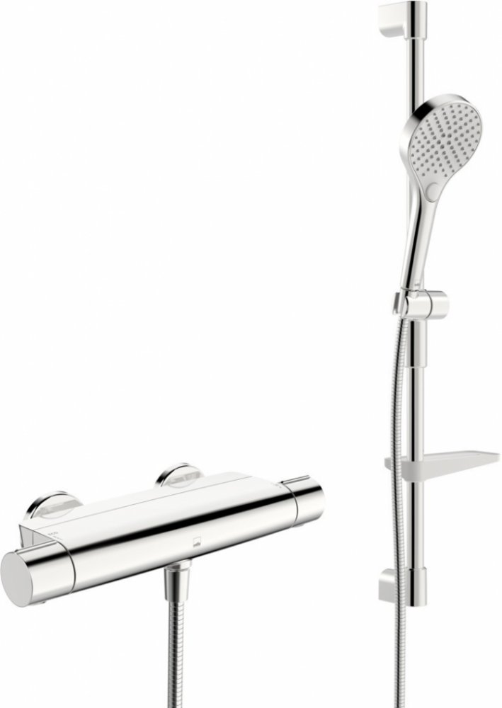 - typ perlátoru: standardní perlátor - typ připojení: sada excentrických konektorů, rozety, tlumič(e) hluku - typ páky / rukojeti: páka ovládání teploty, páka ovládání proudu, symboly tepla/studena, páka pro snadné uchopení - ekologická funkce pro průtok vody - mechanické části: keramická hlavice pro nastavení průtoku, termostatická hlavice pro nastavení teploty, zpětné ventily, síťový(é) filtr(y) - materiál: mosaz s nízkou korozivností - regulace teploty: ochrana proti opaření 38 °C, kryt minimalizující vedení tepla - průtok při 300 kpa verze eco: 0,12 l/s - průtok vody při 300 kpa: 0,22 l/s - tlaková ztráta pro průtok (0,3 l/s): 265 kPa- sada obsahuje: sprchovou hlavici, sprchovou hadici 175 cm, sprchovou tyč, mýdlenku- ruční sprcha má 3 typy proudů vody- druhy vodních proudů: normální - rovnoměrný a jemný proud vody, masážní - silný proud vody díky rotujícím sprchovým tryskám, déšť - rovnoměrný a silný proud vody- nastavitelný nástavec na sprchovou tyč- systém proti opaření- sprchová hadice se otáčí v základně (nekroutí se) - barva: chrom