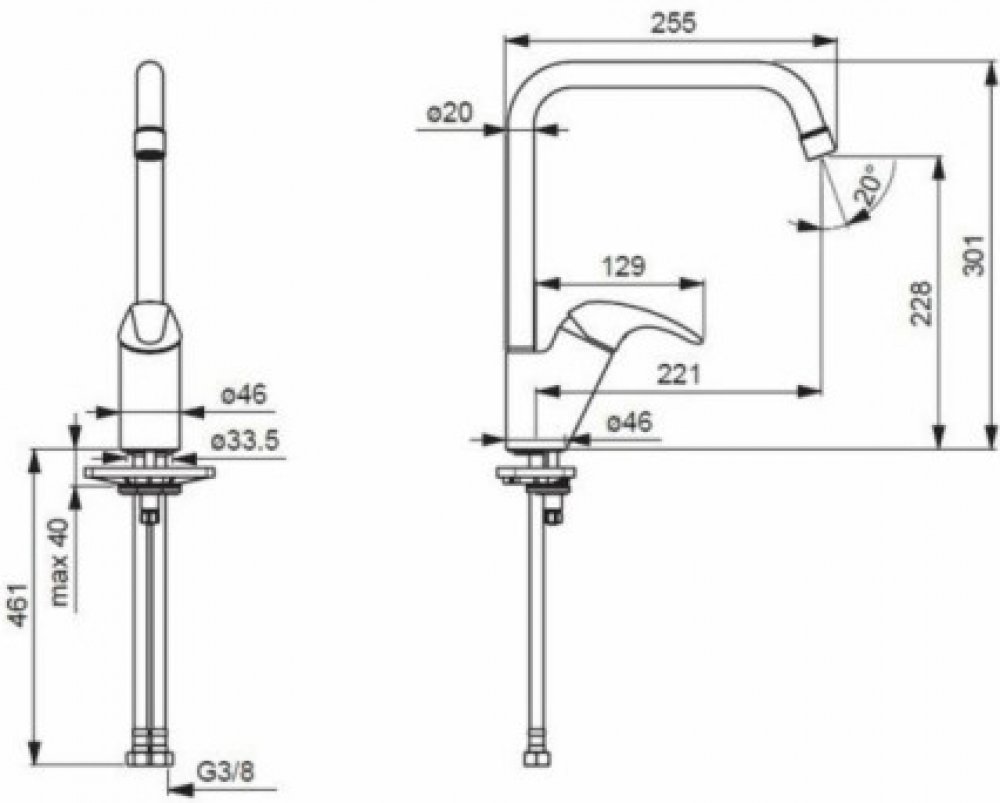 Oras. Model- 1438F. Délka - 25,5 cm. Šířka - 4,6 cm. Hmotnost - 1,61 kg. Výška - 30,1 cm. Barva - chrom. Materiál - mosaz. Konektor - 3/8 palce. Kazeta/mixovací systém (kartuše) - 3,5 cm. Průtok - 12 l/min. Počet rukojetí- 1. Se sprchovou hadicí- No. Výsuvná hlava - č. Skloňte hlavu - Ne. Se sprchovou hlavicí - č. Včetně spodního ventilu - č. Záruka - 60 měsíců. V sadě - Hadice (2 ks). Další informace - Rychlý a snadný instalační systém. Zobák lze otáčet, úhel natočení lze zafixovat. Funkce omezení teploty vody a maximálního průtoku...