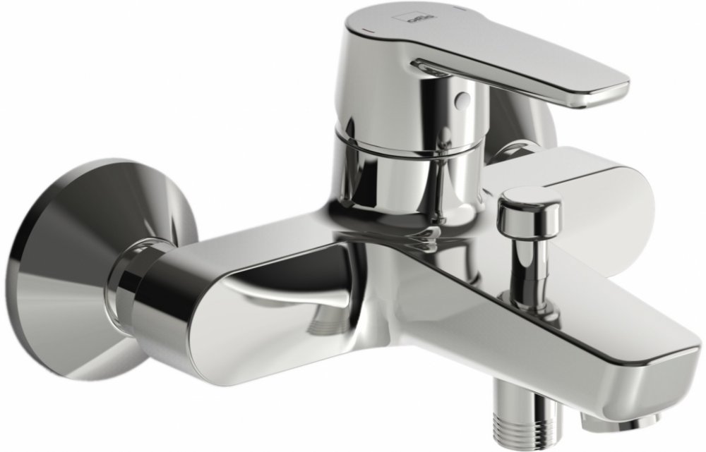 Vanová a sprchová baterie s excentry a rozetami, rozteč přípojek 150 mm . Má také vestavěnou funkci omezující průtok a teplotu vody.