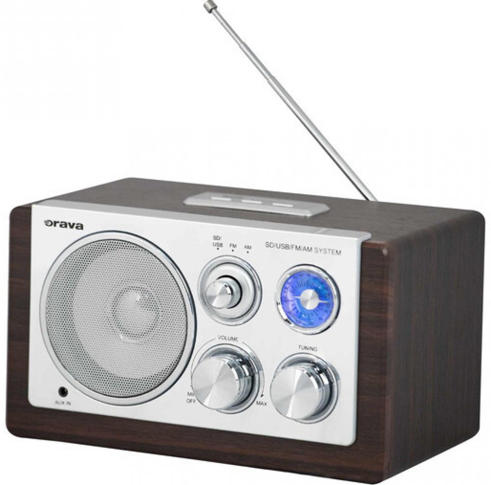 Retro rádio OravaOrava retro rádio RR-29 B vám nabízí manuální naladění vašich radiostanic na analogovém rádiu AM/FM s ručičkovým ukazatelem. Manuální ladění je velmi rychlé a jednoduché. Teleskopická anténa zajistí příjem signálu. Vaši oblíbenou hudbu si můžete přehrávat i na WMA/MP3 přes USB nebo zabudovanou čtečku SD/MMC karet. Širokopásmový reproduktor zajistí věrnost reálnému zvuku.Rádio je vyhotoveno v retro designu – tedy tak, jak se vyrábělo kdysi. Když dřevo a kov byly oblíbeným materiálem, když věci byly poctivě krásné a lahodily oku svým precizním zpracováním. Ať už jde o léta padesátá, šedesátá nebo sedmdesátá, ve 20. století bylo toho mnoho, k čemuž se moderní design navrací, čím se inspiruje a co v podobě úchvatných designových kousků, které si toužíme uchovat po generace, přináší do našich domácností. Zařízení má zabudované AM/FM rádio s automatickým vyhledáváním radiostanic (AM - radiostanice v pásmu velmi krátkých vln, FM - radiostanice v pásmu dlouhých, středních a krátkých vln). Zařízení má intergrovaný vstup na připojení USB klíče a SD karty, což umožňuje přehrávat na zařízení audiosoubory.Je to nejvyšší možný výkon zařízení (udávaný ve wattech), který lze pustit do reproduktoru bez jeho poškození.Zařízení má intergrovaný vstup na připojení USB klíče a SD karty, což umožňuje přehrávat na zařízení audiosoubory.Je to nejvyšší možný výkon zařízení (udávaný ve wattech), který lze pustit do reproduktoru bez jeho poškození.Při reprodukování zvuku je nesmírně důležité, nakolik je kvalitní. Bez šumů, chrastění, rušivých tónů, zařízení by mělo věrně reprodukovat reálný zvuk tak, aby lahodil uším. Takový kvalitní zvuk zazní i z tohoto retro rádia. Technické údaje:BarvaHnědá/StříbrnáBluetoothNeVýstup na sluchátkaNeZvukový výkon1x 3W (RMS)Rozměry (cm)23 x 16 x 13CD mechanikaNeAM rádioAnoFM rádioAnoUSB portAnoAUX vstupAnoAUDIO OutNeZabudovaná čtečka karet AnoHmotnost (kg)1.4Teleskopická anténaAno