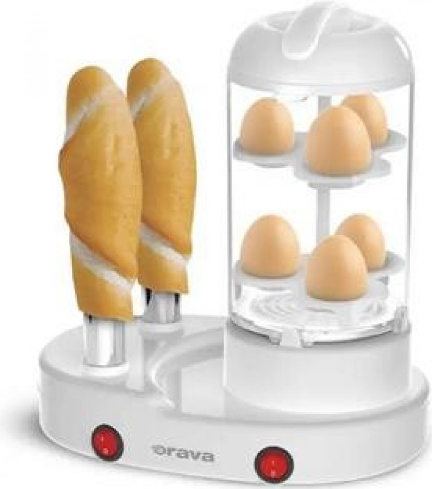 Tradiční snídaňové kombo? Párky a chutná vajíčka na tvrdo nyní připravíte v jednom spotřebiči. Stroj na přípravu hotdogů Orava HM-04 se dvěma nástrčnými trny a varnou nádobou z nerezavějící oceli dokáže v horké páře připravit až 6 párků a s použitím speciálního nástavce i 6 vajíček na tvrdo.Orava HM-04 v nádobě s nepřilnavým povrchem připraví najednou až 6 párků v horké páře. Jelikož se párky nevaří klasicky ve vodě, ale připravují se na páře, jsou šťavnatěji chutnější a je radost do nich zakousnout. K ohřevu pečiva a vytvoření dírky, do které vložíte křupavý, šťavnatý párek, slouží 2 trny z nerezavějící oceli. Rohlík se tak díky němu ohřeje po celé délce a bude krásně vonět, jako by byl právě upečený.Díky speciálnímu nástavci připravíte ve varné nádobě pomocí horké páry i chutná vajíčka na různé způsoby. V nádobě také můžete vařit různé druhy zeleniny – brokolice, chřest či kukuřičné klásky budou hotovy do 10-ti minut!