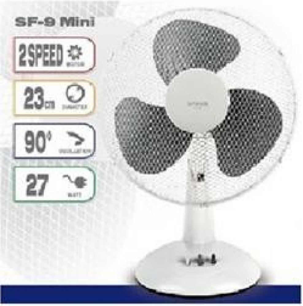 Malý, ale velmi účinný pomocník, který zpříjemní nesnesitelné horké ovzduší v místnosti a příjemně vás osvěží. Stačí ho umístit na stůl a práce nebo učení vám půjdou lépe od ruky. Ventilátor má elegantní tvar umožňující komfortní ventilaci, malé rozměry a nízkou hmotnost. Jeho velmi tichý a spolehlivý chod vás určitě nebude rušit.Technické parametry a specifikace: