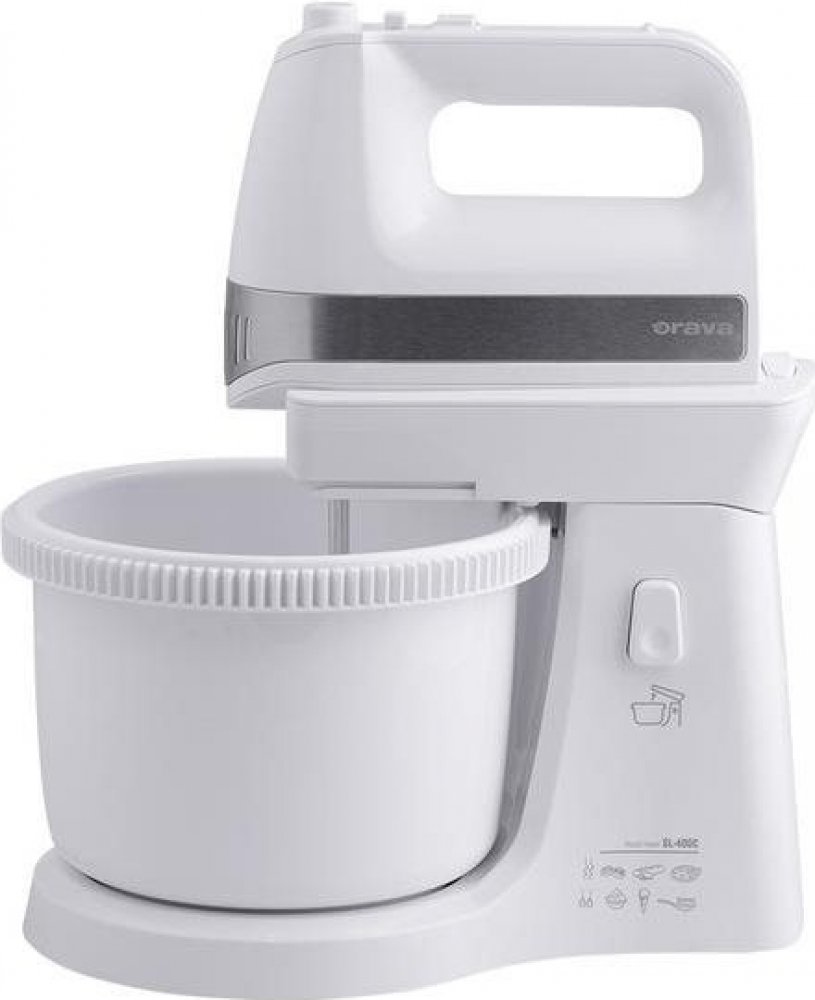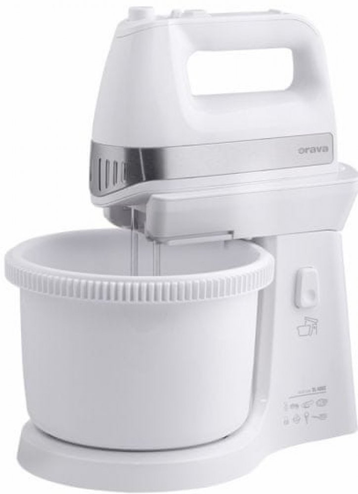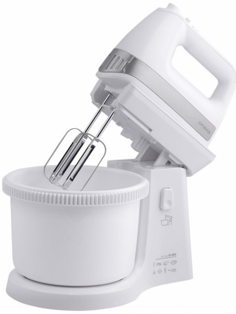 Často při šlehání stačí malá nepozornost a suroviny i se šlehačem sbíráme po zemi. Šlehač Orava SL-400C má však pevnou konstrukci, pevně stojící na pracovní desce, takže vám z ní už nikdy neuteče. Kvalitní vlastnosti a bohaté příslušenství zaručí, že to bude Váš praktický kuchyňský pomocník v domácnosti při vaření i pečení. Nabízí Vám tři základní funkce: šlehání, míchání a mixování. Vysoce výkonný motor pracuje při příkonu 400 W a nabízí pomocí posuvného spínače celkem pět rychlostí. Ovládání spotřebiče je velmi jednoduché a navíc je usnadněno pohodlným ergonomickým designem. Součástí je 2,5l otočná nádoba s mechanickým pohonem a bohaté příslušenství. Společně s ručním šlehačem získáte také dvojici velmi výkonných háků na míchání a dvě metly na šlehání, vyrobené z ušlechtilé oceli a navíc pochromované, dosahující kvalitních výsledků při šlehání v krátkém čase.