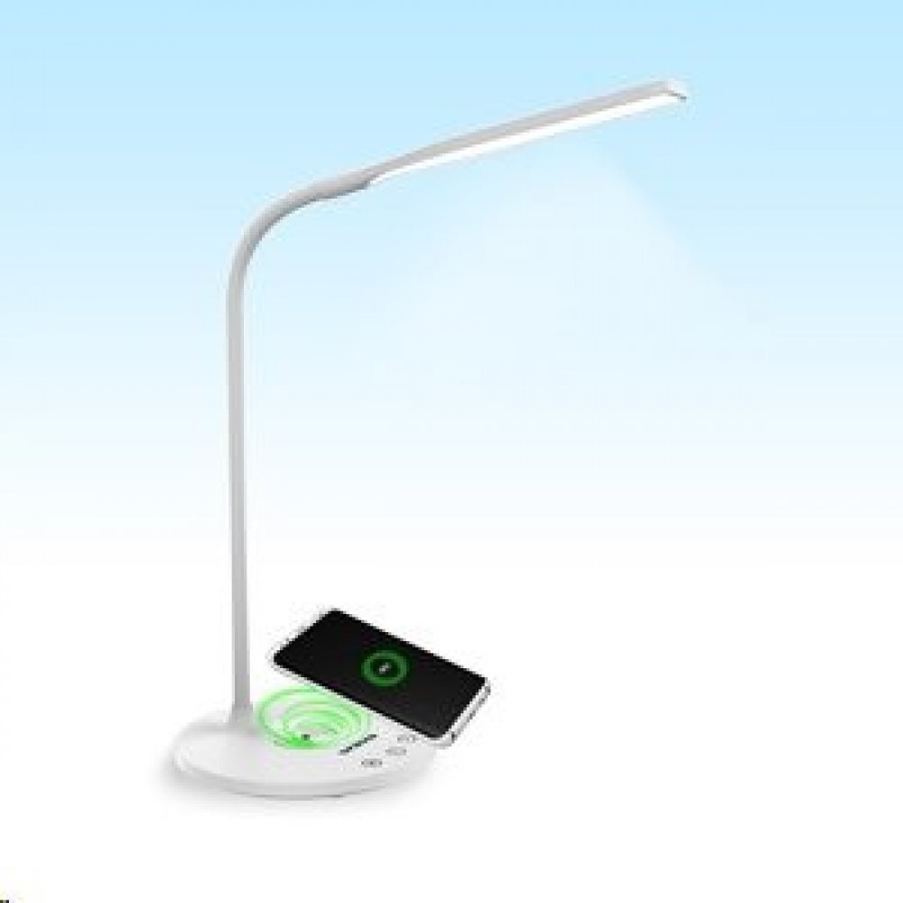 Moderní stolní LED lampa s bezdrátovou nabíječkou Quick Charge (Qi) Kompatibilní se všemi chytrými telefony s technologií Qi Stylové designové provedení Jednoduché ovládání dotykovými tlačítky Nastavitelné rameno a stínítko LED lampy Zapínání a tlumení světla dotykovými tlačítky Inteligentní časované zhasnutí svítidla 3 režimy světla: přirozené světlo, studené bílé světlo, teplé žluté světlo LED světlo s dlouhou životností až 30 000 hodin Napájení: DC 230V~ 50 Hz, 12 V/2 A, 24 W