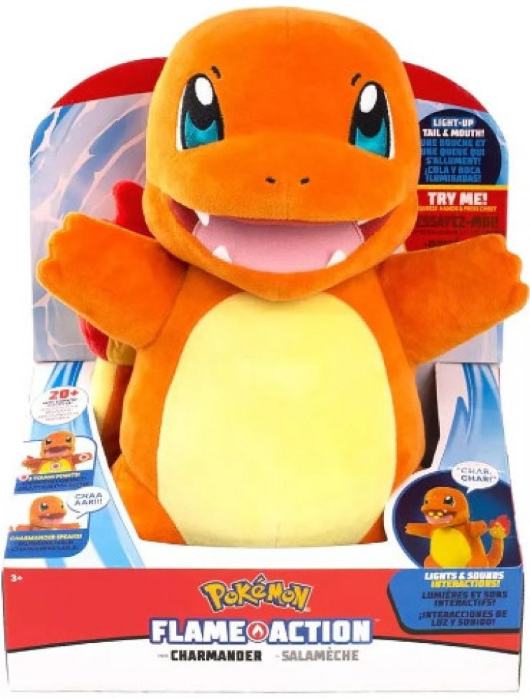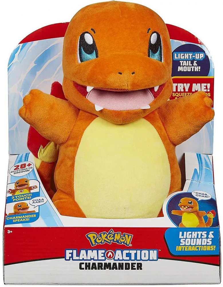 Roztomilý a mazlivý Pokémon šlehající plameny - Charmander Interaktivní plyš, který musí mít všichni fanoušci Pokémonů! Flame Action Charmander - zvukově a světelné efekty