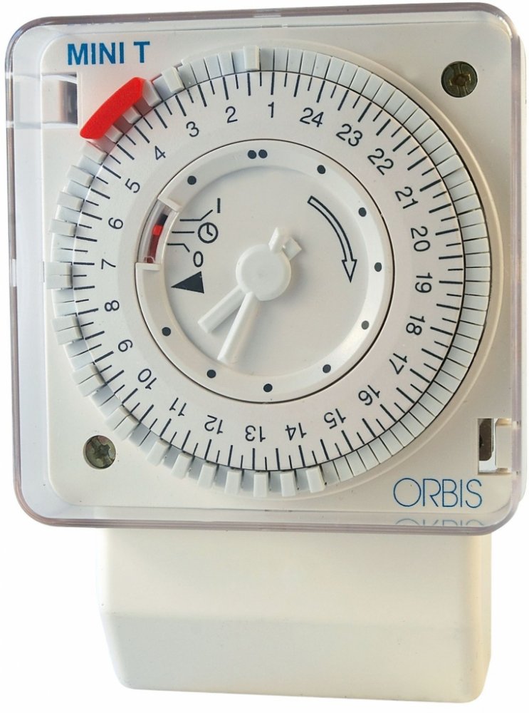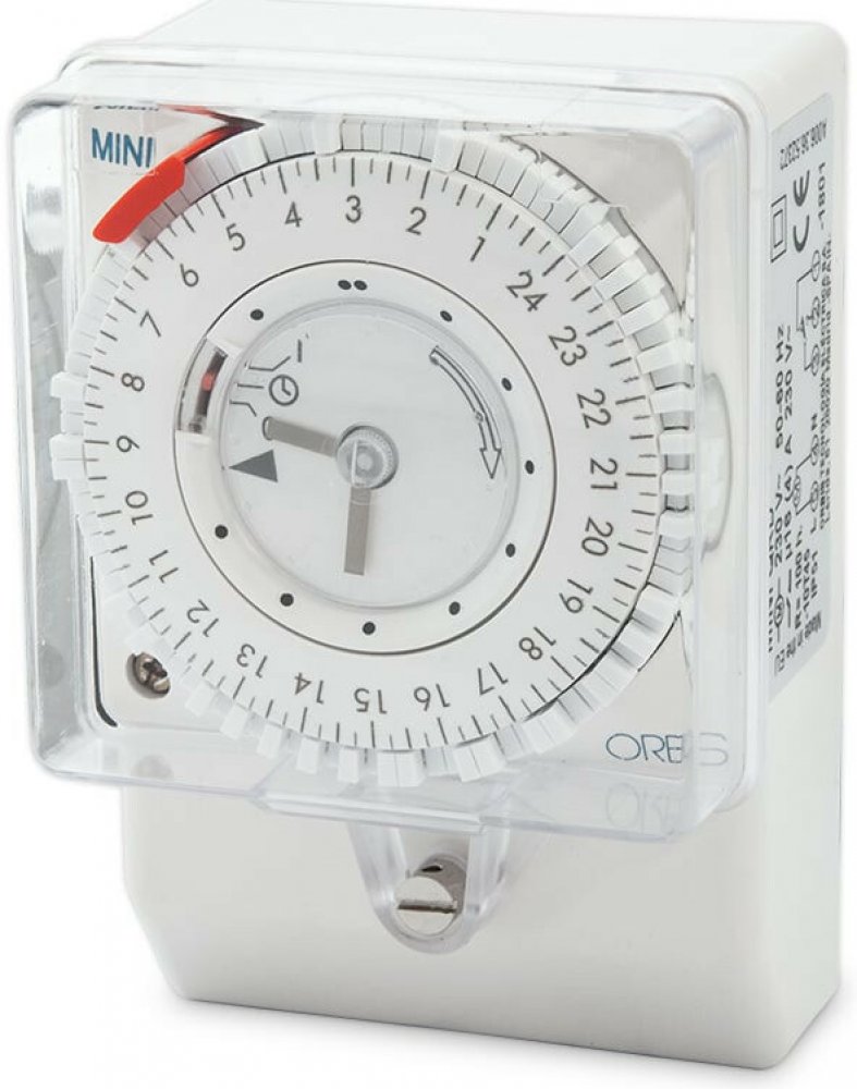 Hodiny spínací MINI QRD, analogové (mechanické), denní program (24 hodin), rozměry 100x69mm, napájecí napětí 230V 50-60Hz, max. spínaný proud 16A, nejkratší spínací interval 15 minut, se zálohou chodu 100 hodin, přípustná teplota okolí -10°C až +45°C, bílá barva, časová základna - QUART...