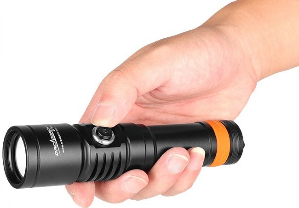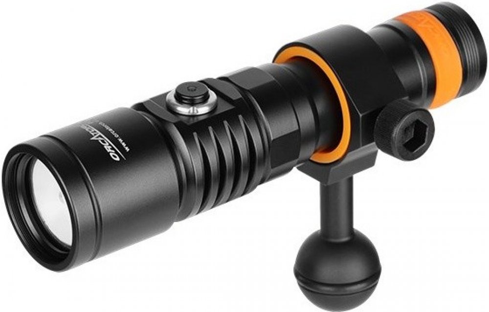 Červené světlo je ideální pro fotografování plachých zvířat pod vodou. UV světlo je určeno pro fluorescenční noční potápění bez potřeby použití filtrů. V režimu bílého paprsku máte k dispozici dva jasové módy. Indikátor stavu baterie je integrován do bočního spínače a vždy vám poskytne informaci o zbývající energii baterie.