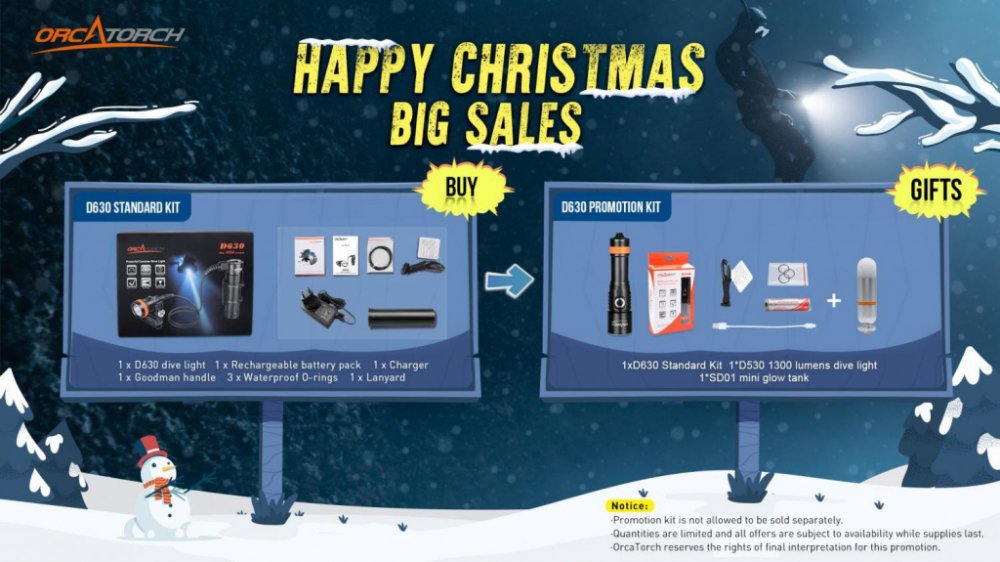 Kanystr D630 od OrcaTorch je primárně potápěčské světlo speciálně určené pro technické potápěče, do jeskyň a vraků. Světlo nabízí až 4 000 lumenů a jeho úhlově nastavitelný kabel umožňuje otočení o 90 ° a 180 ° mezi kanystrem a hlavou - perfektní využití u sidemountu i twinu. Baterie poskytuje až 5 hodin vynikajícího potápěčského zážitku v nejjasnějším režimu. Akumulátor lze také odpojit a použít jako power banku. Tech. data: 5* CREE LED , výstup 4000 lumenů 3 režimy (max. 4000lm, 1500lm, min. 460lm) span class="tlid-translation transl