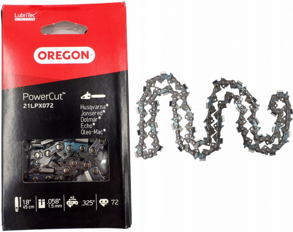 Pokud potřebujete při celodenním kácení dosáhnout nejlepšího výkonu, je pro vás tento řetěz to pravé. 'X' ostření- Zlepšená geometrie ostření podstatně zkvalitňuje ostrost řetězu, zvyšuje jeho rychlost a výkonnost. Nejvýkonnější řetěz s plně dlátovitými – hranatými řezacími zuby. Speciální vodící články snižují zpětný vrh. Vibe-Ban™ konstrukce snižuje vibrace o více než 25%. Lubrilink™ ve spojovacích článcích pomáhá roznášet olej. Lubriwell™ jsou olejové otvory ve vodících článcích, které pomáhají dopravovat olej po celé délce lišty ve vodící drážce. Směrová značka na hřbetu řezacího zubu usnadňuje ostření. Vhodný pro řetězové pily o obsahu 35cm3 až 62 cm3 TECHNICKÉ PARAMETRY