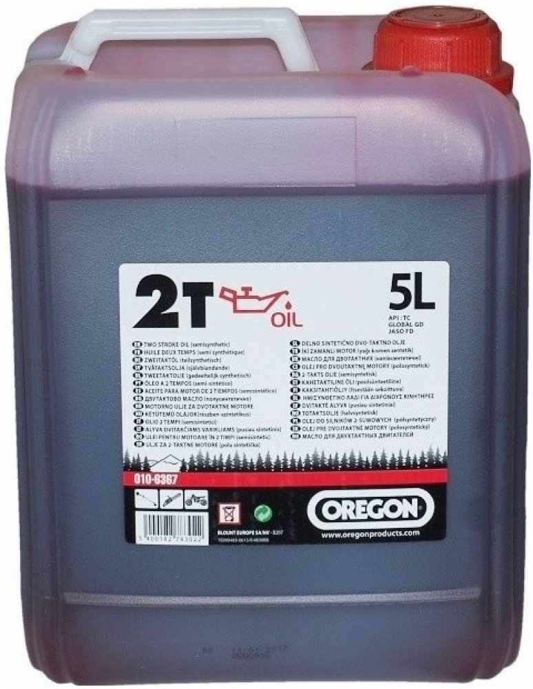 Olej 2takt polosyntetický 5l OREGON červený O106367 O10-6367 Víceúčelový olej do dvoutaktních motorů poslední generace s nízkou dýmavostí a integrovaným stabilizátorem paliva. Tento špičkový motorový olej zajišťuje rychlé a snadné spuštění motoru a v