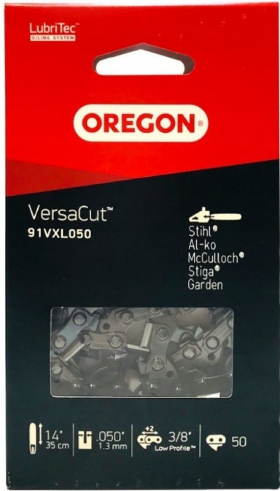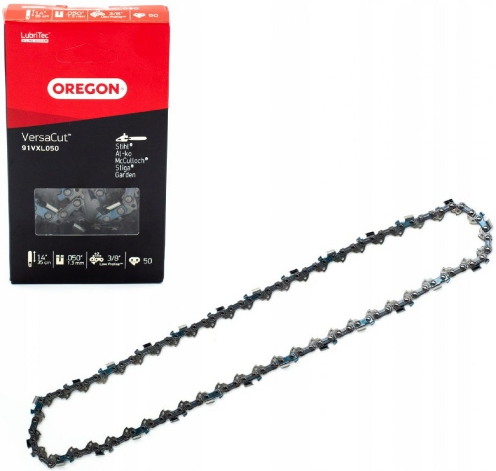 Vhodný pro všechny typy dřeva a všechny podmínky. Díky speciální konstrukci patří řetěz 91VXL mezi řetězy s velmi nízkými vibracemi. Pro řetězy 91VXL je typický o 33% delší řezací zub v porovnání s ostatními řetězy řady 91. Řetěz se vyznačuje modrým zubem s geometrií pro rychlejší řez a vyšší odolnosti proti korozi. 'X' ostření- Zlepšená geometrie ostření podstatně zkvalitňuje ostrost řetězu a zároveň zvyšuje jeho rychlost a výkonnost. Speciální konstrukce omezovače snižuje zpětný vrh. Vibe-Ban™ konstrukce snižuje vibrace minimálně o 25%. Lubrilink™ ve spojovacích článcích pomáhá roznášet olej, tím zdokonaluje mazání a maximálně eliminuje vytahování řetězu. Lubriwell™ jsou olejové otvory ve vodících článcích, které pomáhají dopravovat olej po celé délce lišty ve vodící drážce. TECHNICKÉ PARAMETRY
