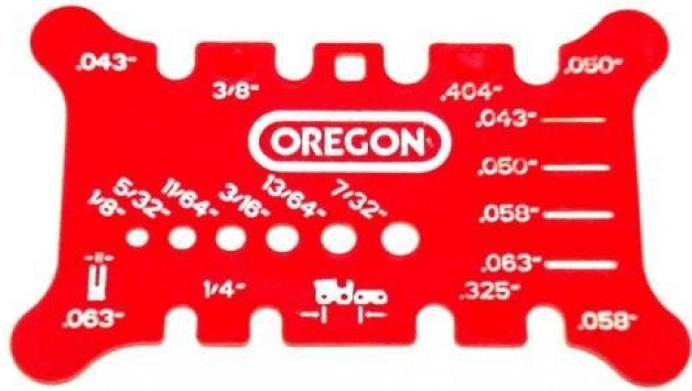 Měrka řetězu OREGON pro všechny značky a rozteče pilových řetězů.
