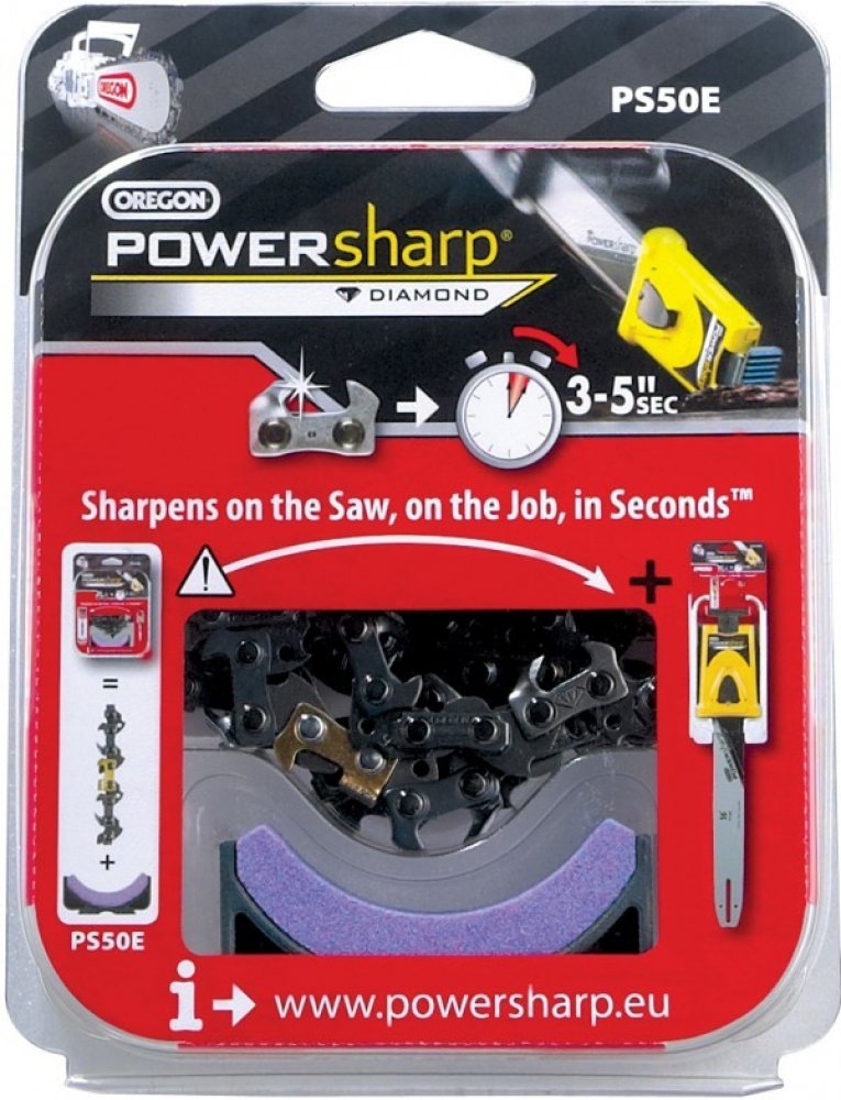 PowerSharp® je unikátní pilový řetěz a jednoduchý systém přesného ostření. Umožňuje uživatelům řetězové pily naostřit řetěz během několika vteřin přímo na pile v průběhu práce. Tato sada se skládá z řetězu PowerSharp s brusným kamenem. Je nutné dokoupit vhodnou sadu vodící lišty s ostřícím nástavcem PowerSharp.