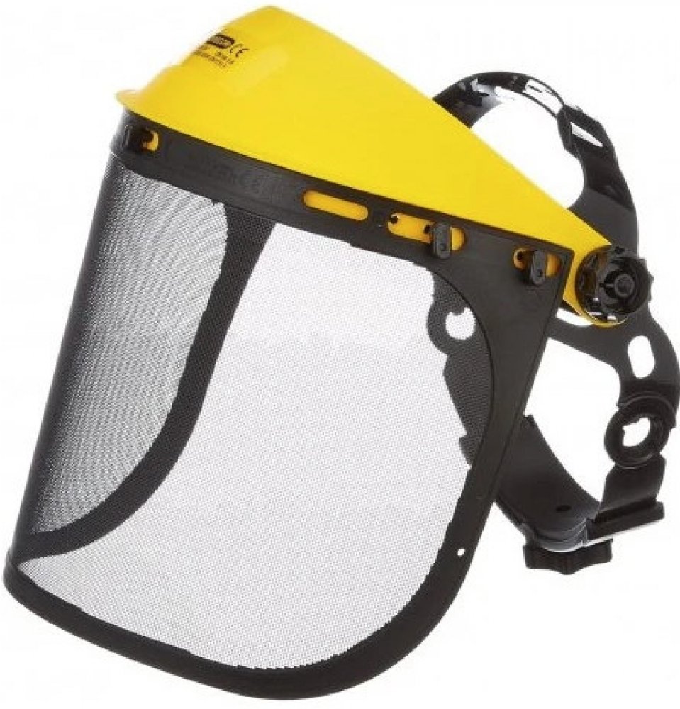 Tento ochranný štít je určen pro práci s pilami, křovinořezy apod. Chrání obličej před třískami, pilinami a jiným odpadem vzniklým při práci s nástroji. Štít je lehký, pevný, odolný a nastavitelný. Čelový pás s jednobodovým nastavováním Štít z ocelové síťoviny (EN 1731 F)