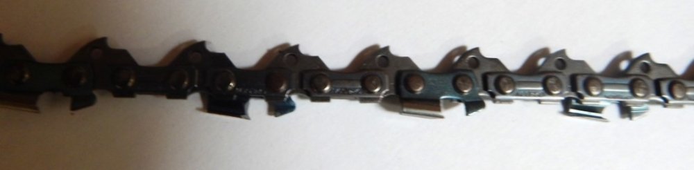 Řetěz se vyznačuje modrým zubem s geometrií pro rychlejší řez.